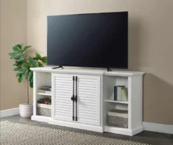 Entertain a rugged yet refined sense of style with this TV stand. Rustic finish and plank-style details pay homage to reclaimed barn wood, while faux metal banding with nailhead accents infuses a touch of industrial cool. Ultra clean lines ensure a look that can go from the country to the city and feel equally at home.