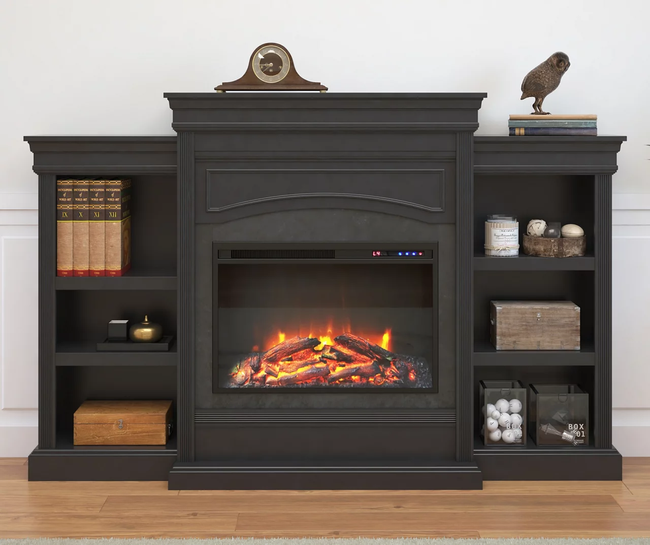 Love being in your living room again as you cozy up next to the Ameriwood Shoreleaf mantel fireplace. The black finish frame is accented by a dark gray marble effect around the center insert and beautiful molding details along each edge. Forget relaxing in front of your TV when you could be curled up with a good book in front of this three-tiered fireplace. On either side of the electric fireplace insert is extra storage space for your books and collectibles. Control the fireplace flame setting with the included remote control or by the touch panel and choose to enjoy with or without the heat setting while still allowing the flames to give off their calming feel. This fireplace insert is powerful enough to heat up a room up to 400 square feet and features an adjustable temperature control to keep your room at the perfect temperature.