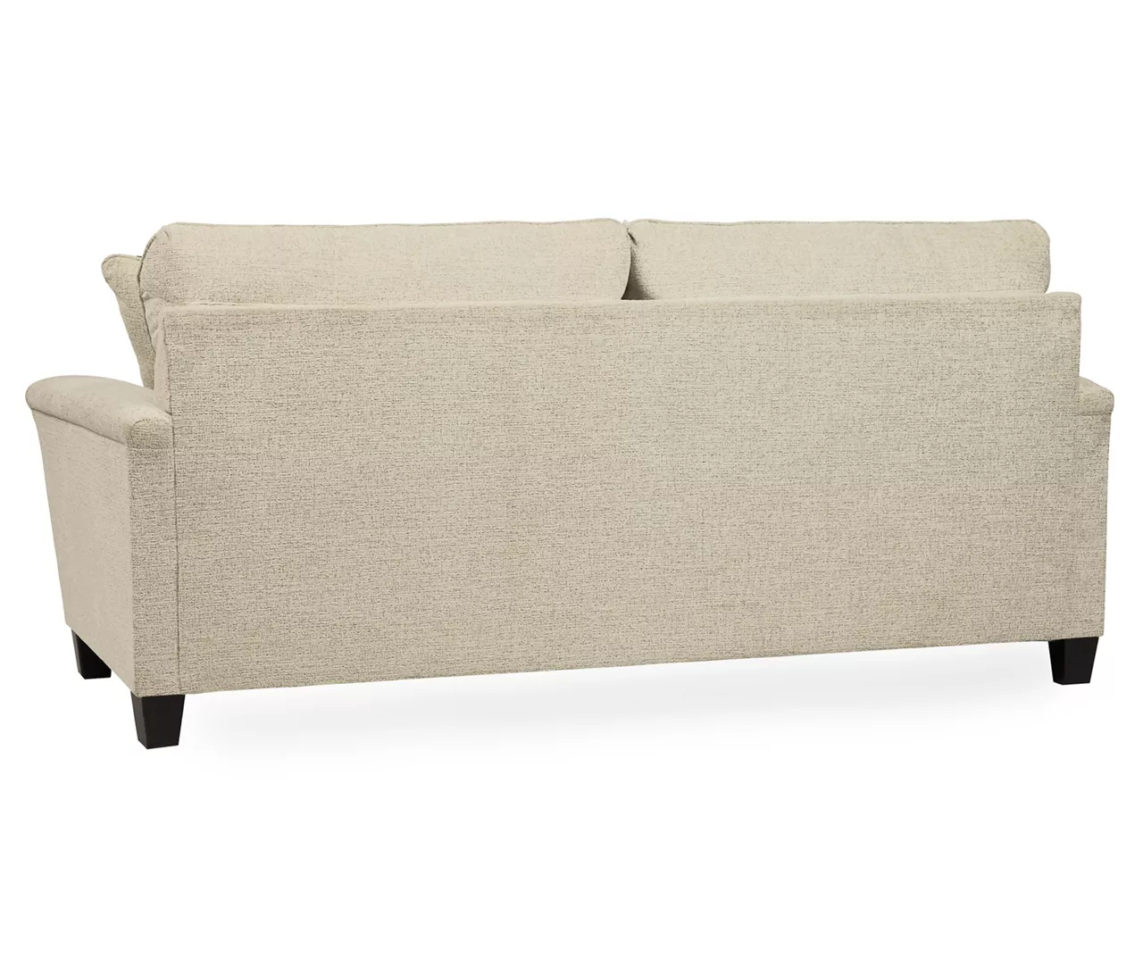 If you’re looking to lighten the mood, you’re sure to find this space-conscious, budget-conscious sofa from Ashley a breath of fresh air. Covered in a cream-tone chenille upholstery loaded with plush texture, this less-is-more contemporary sofa is dressed to impress with angled side profiling and track armrests wrapped with a layer of pillowy softness for that little something extra. Crisp and clean, the two-over-two cushion styling adds up to one sensational look for your living or family room.