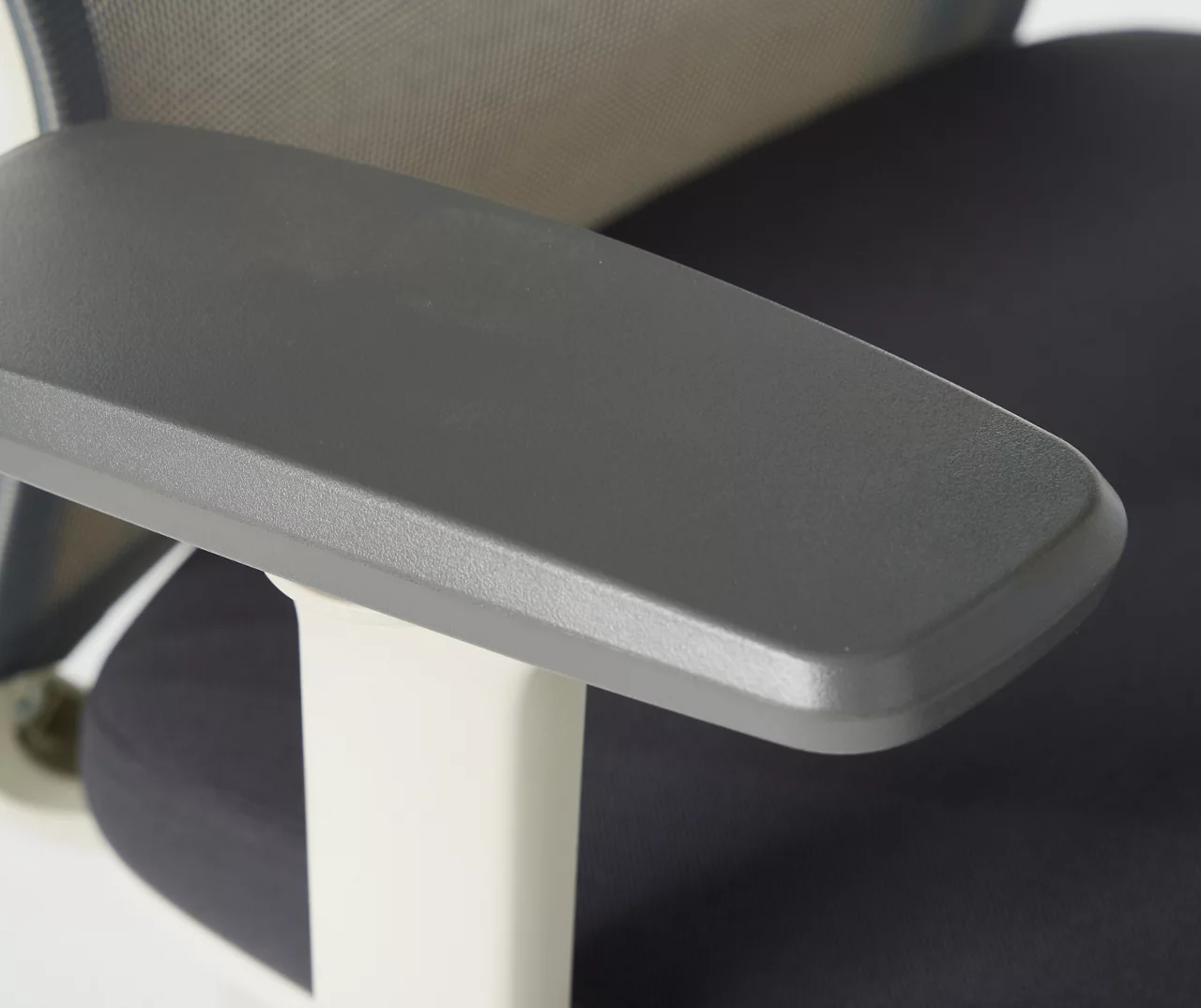 Work or browse with the rolling convenience of this office chair! Dial in your comfort with the adjustable height seat and armrests. Gray fabric lines the cushioned seat and mesh backrest as the frame is finished in a contrasting off-white color.