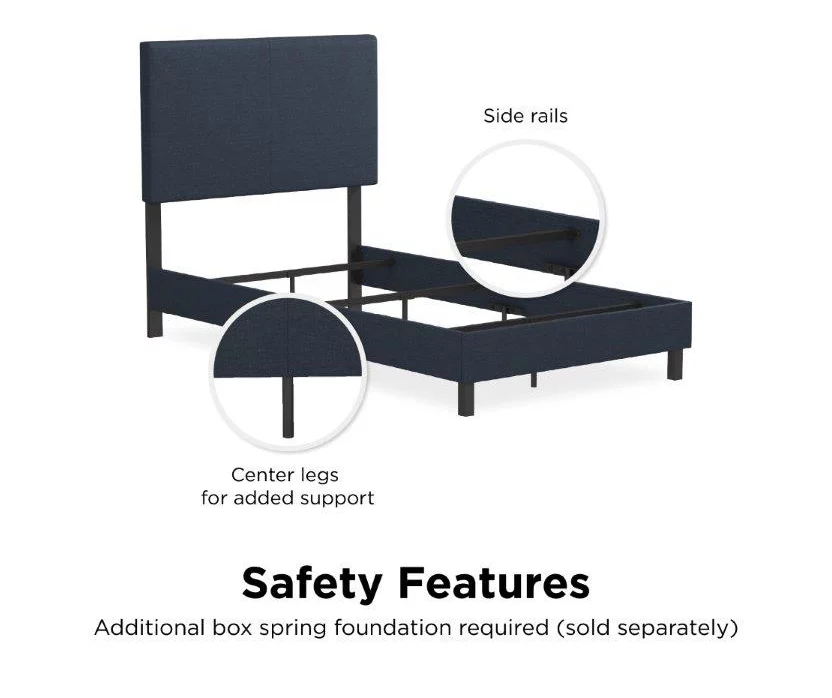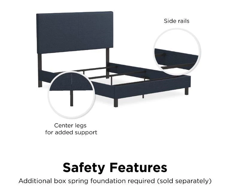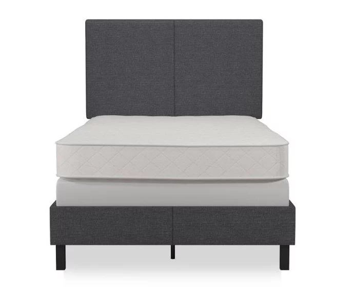The “less-is-more” concept is perfectly embodied by the DHP Jazmine upholstered bed. This chic and minimalistic bed features a solid headboard, decorated with beautiful upholstery for a touch of warmth, making this bed a great complement to any bedroom. The Jazmine is constructed in sturdy wood and metal frame, with center legs for added support. Complete it with a foundation, a mattress, some duvets and pillows (sold separately) and sleep your night away .