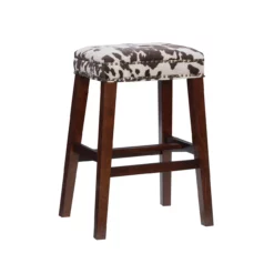 Perk up your home with this bar stool featuring a bold cow print upholstery accented with a sleek black finish and nailhead trim. Classic lines suit any style of home while the dynamic print adds personality to any space. Perfect for nearly any aesthetic, this stool brings a playful yet timeless element to a kitchen, home bar or dining area.