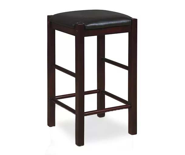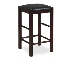 Versatile, space saving two pack set of backless counter height stools can add comfortable seating to any gathering height table or kitchen counter. Featuring padded black faux leather upholstered seat and made with solid woods in espresso brown.