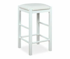 This versatile, space saving set of Bay backless counter height stools can add comfortable seating to any gathering height table or kitchen counter. Padded white faux leather upholstered seats grace each chair and are paired with solid wood frames in white that are designed to elevate the look of any aesthetic.