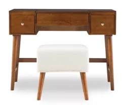 Merci 2-Piece White & Walnut 2-Drawer Lifting Mirror Vanity Set