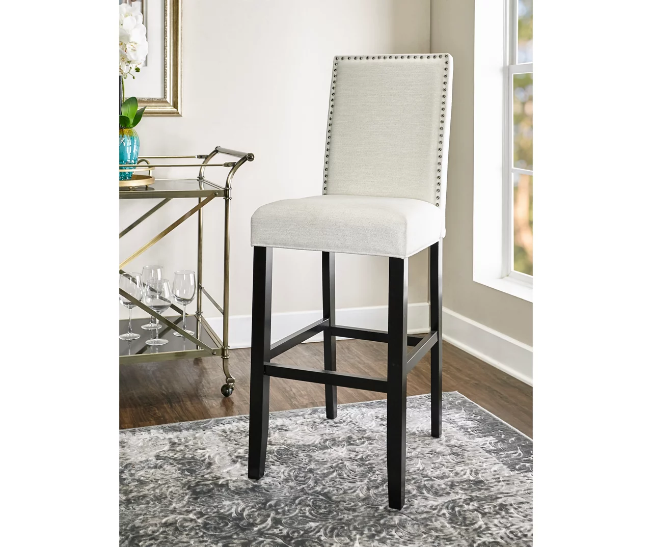 Blaire White Glitz Nailhead Bar Stool