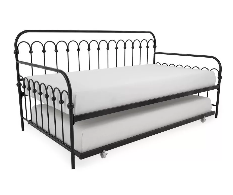 Modern and chic, in an impeccable design is the Novogratz Bright Pop metal daybed and trundle. This daybed has been fabulously designed with stylish rounded details on a sturdy metal frame, which includes side rails and heavy-duty steel slats that ensure stability and durability. This multi-functional piece can fit a variety of rooms in your home from a living space to a bedroom and is ideal for extra seating, sleeping and hosting guests with its pull out trundle.