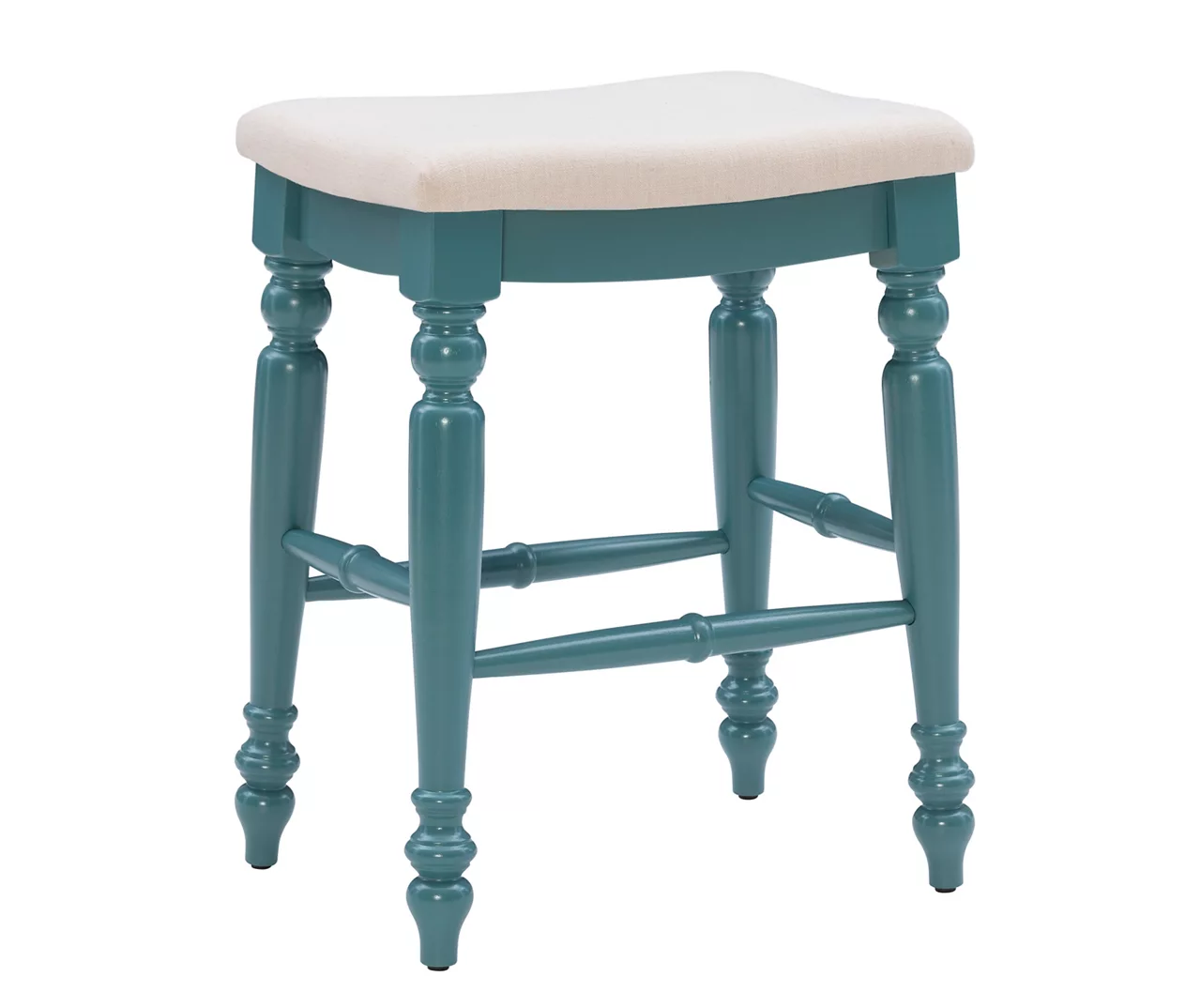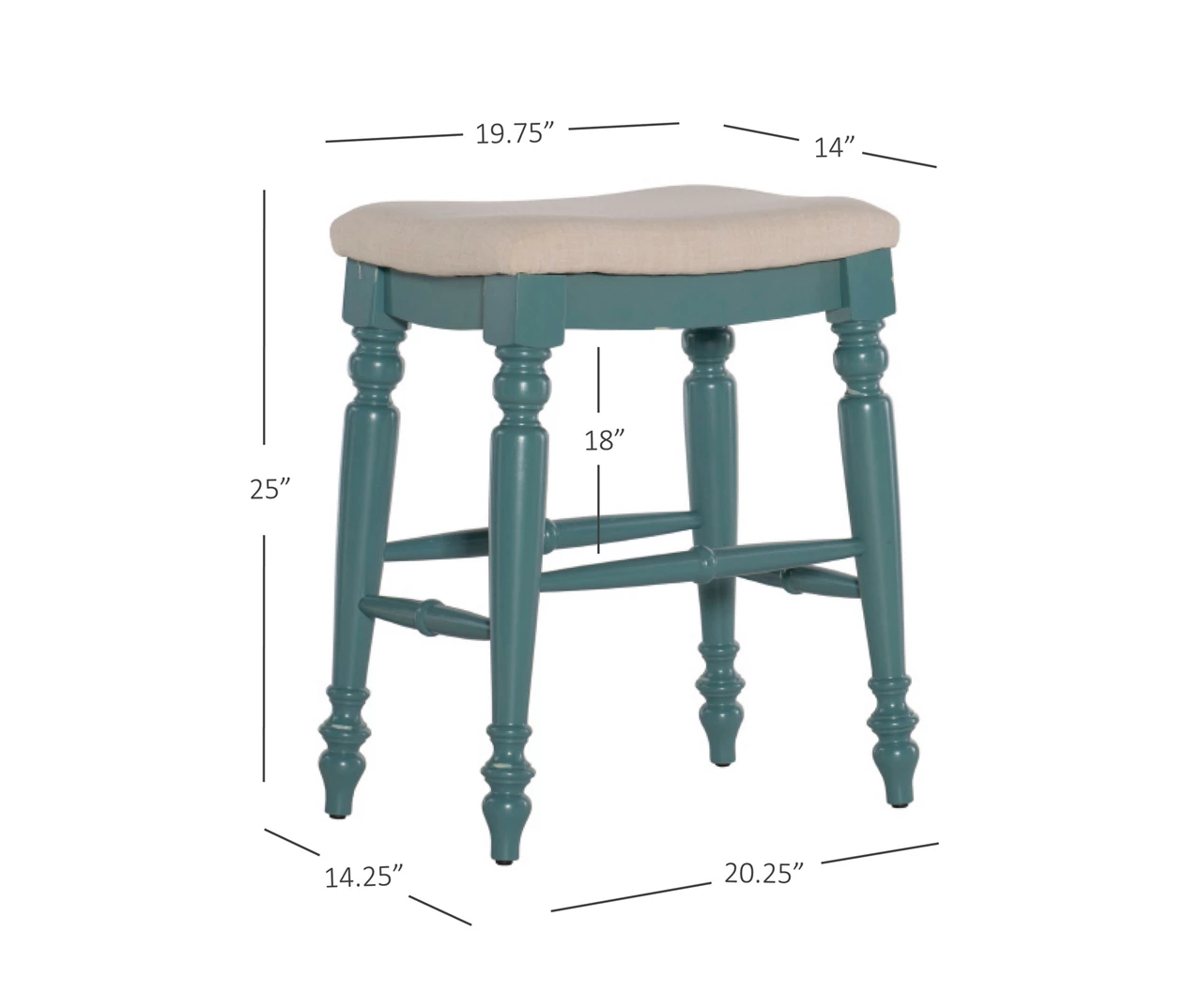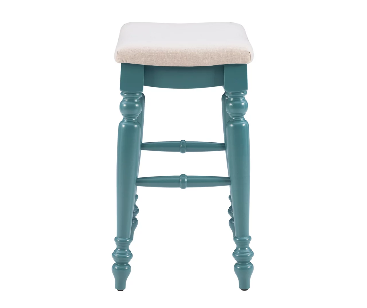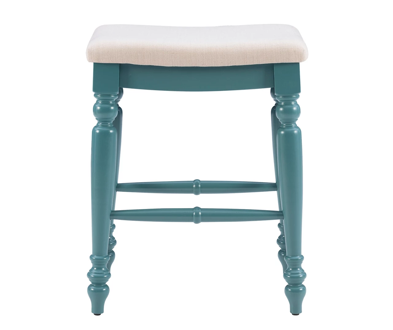 Beautifully turned legs and ivory upholstery give this backless counter stool a traditional look that elevates the design of any home, while the charming blue finish contrasts with the neutral linen upholstery. This stylish stool blends a classic elegance with sturdiness and comfort thanks to a padded seat and foot rests. Ideal for any home bar, kitchen island, or breakfast nook, this stool introduces a timeless look complements any home.