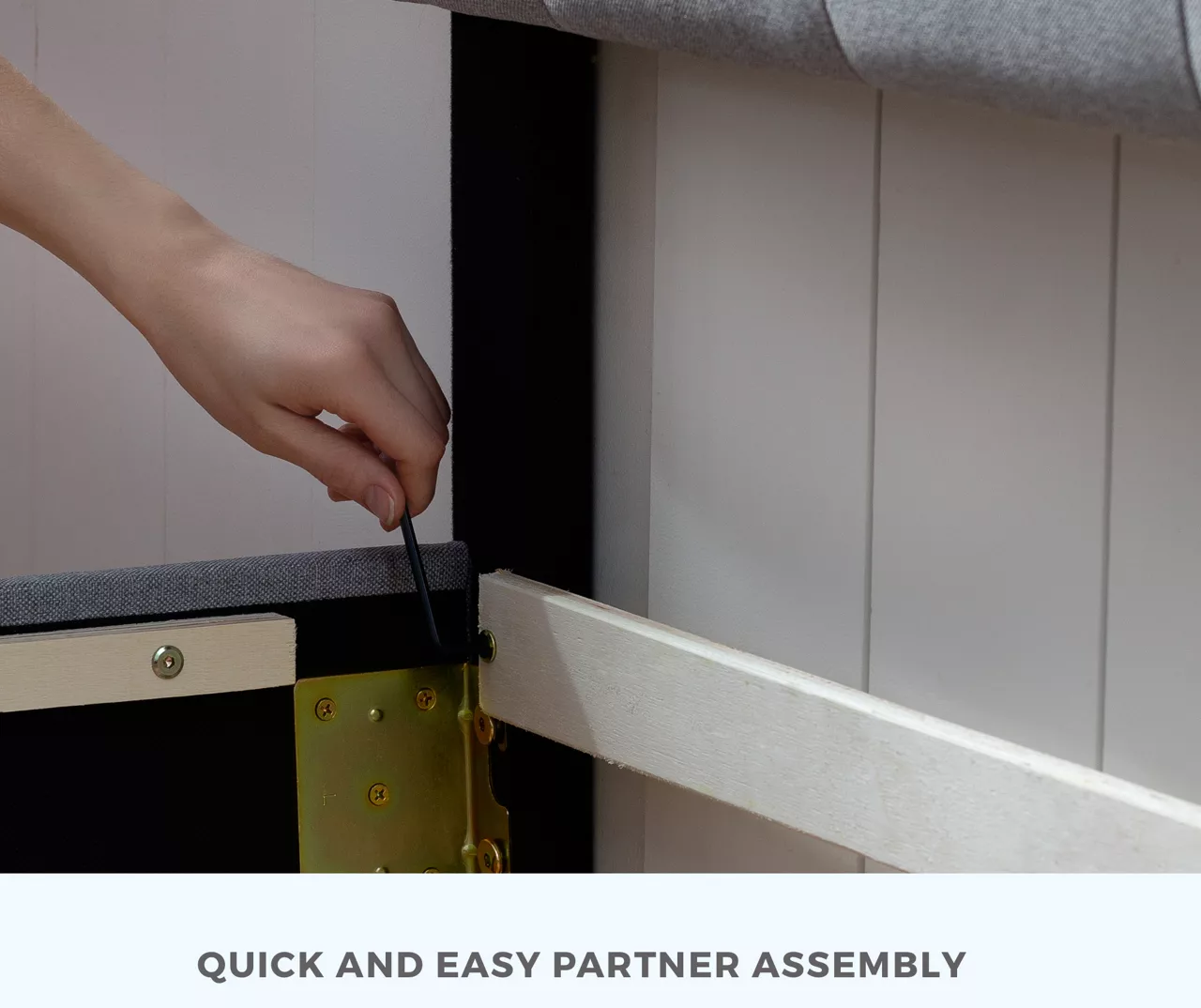 - Headboard has a stone linen-inspired fabric finish with buttonless square tufting for a classy look