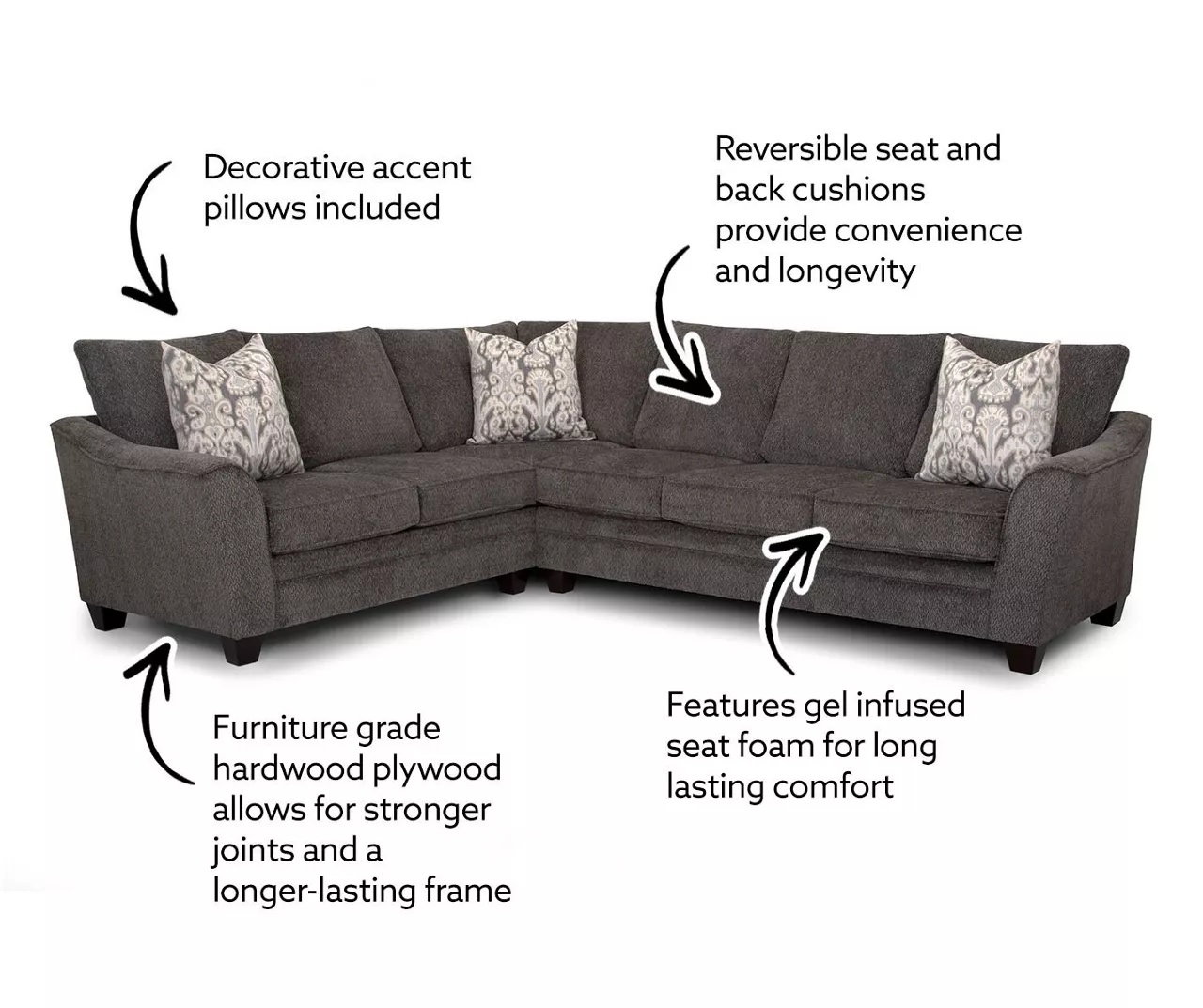- Classic style sectional with right-arm-facing sofa and left-arm-facing loveseat