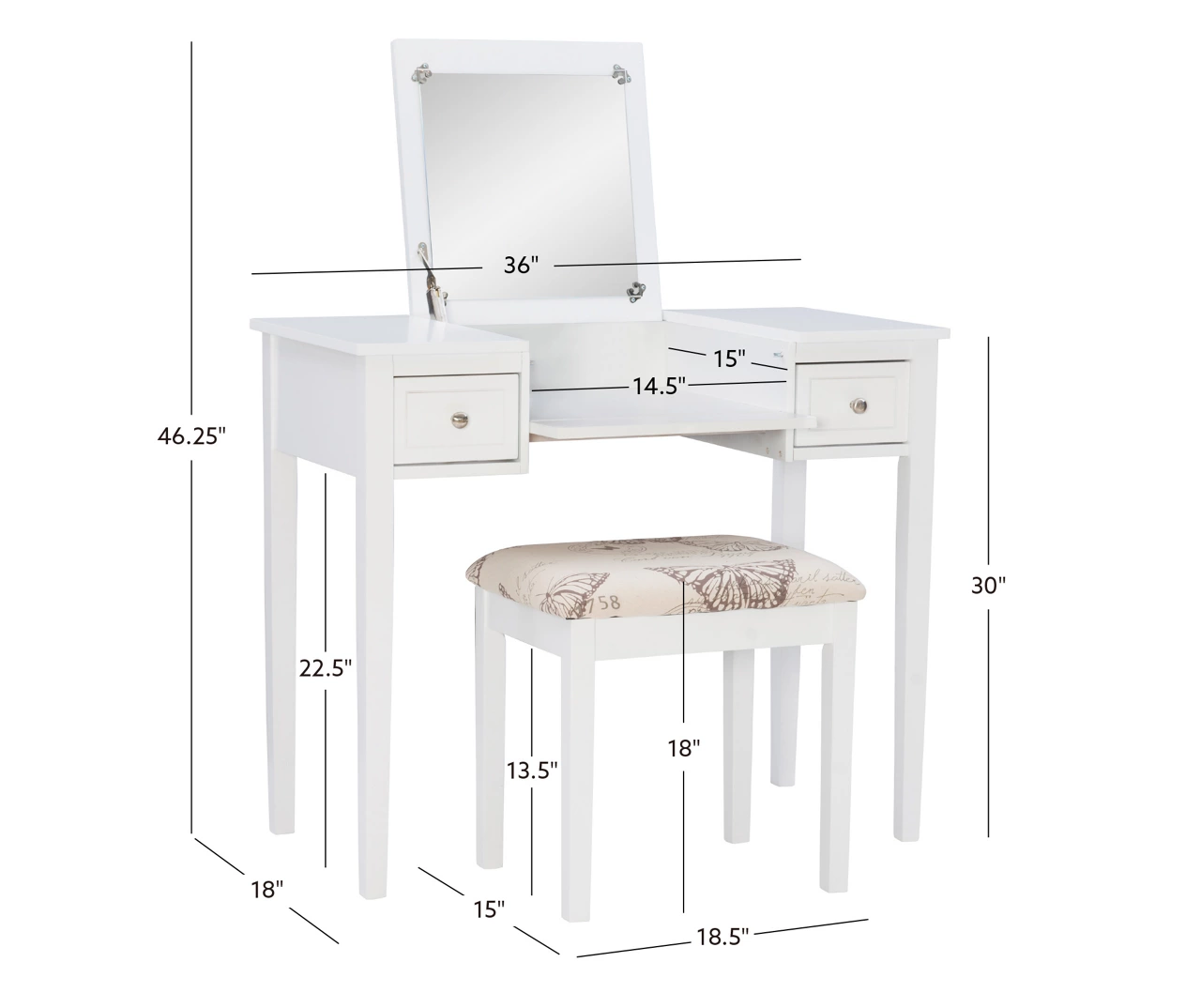Butterfly Mirror Vanity Set With Stool