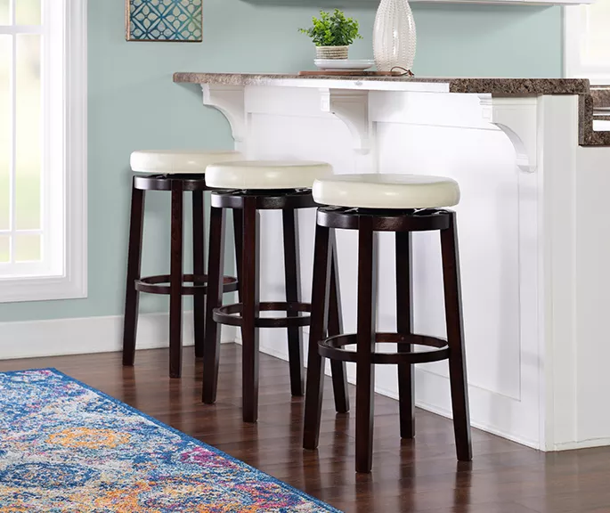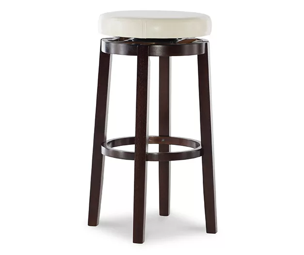 Sit and swivel in style with this chic backless stool featuring a simple, transitional design that suits any home. A round seat and frame lend a contemporary element while sleek, contrasting finishes offer a sophisticated touch. Padded seating, foot rest and a smooth swivel motion offer comfort while the sturdy construction ensure years of use.