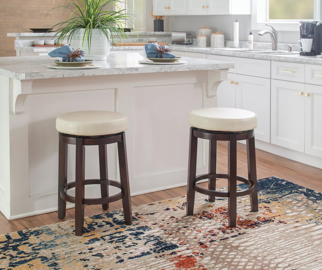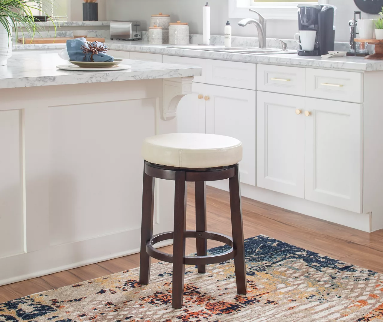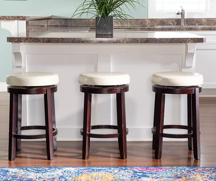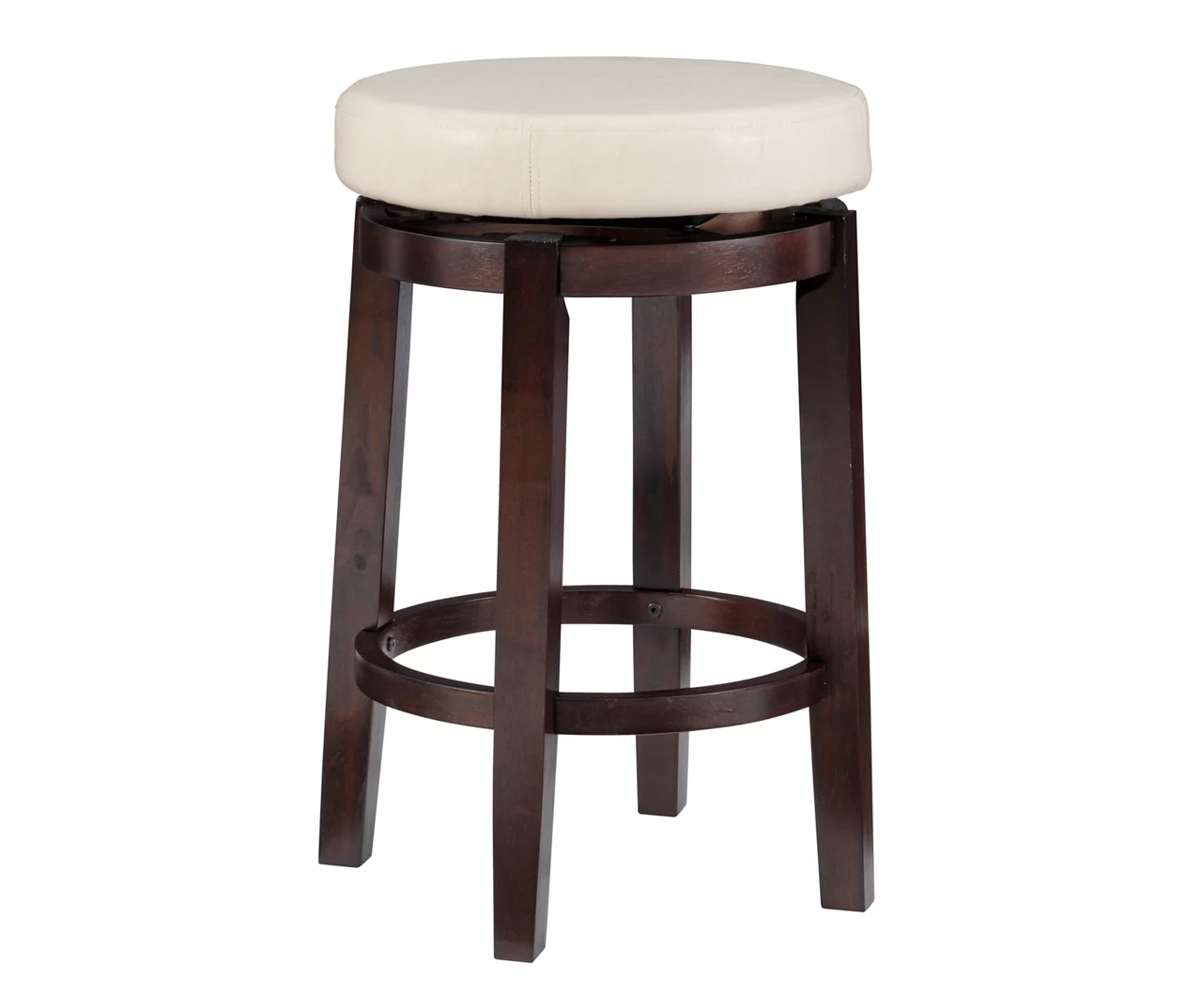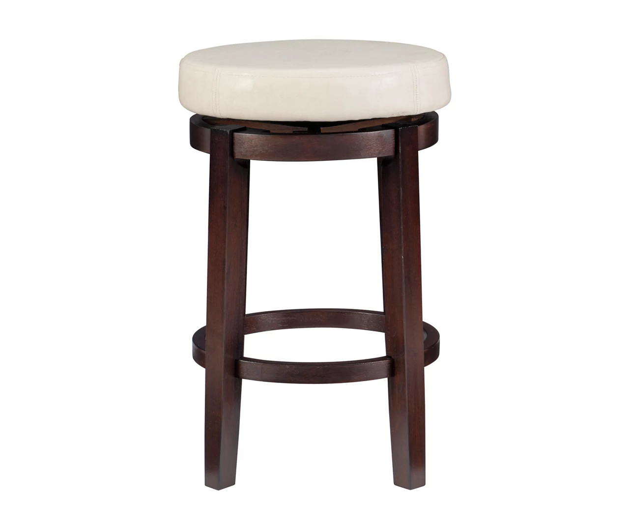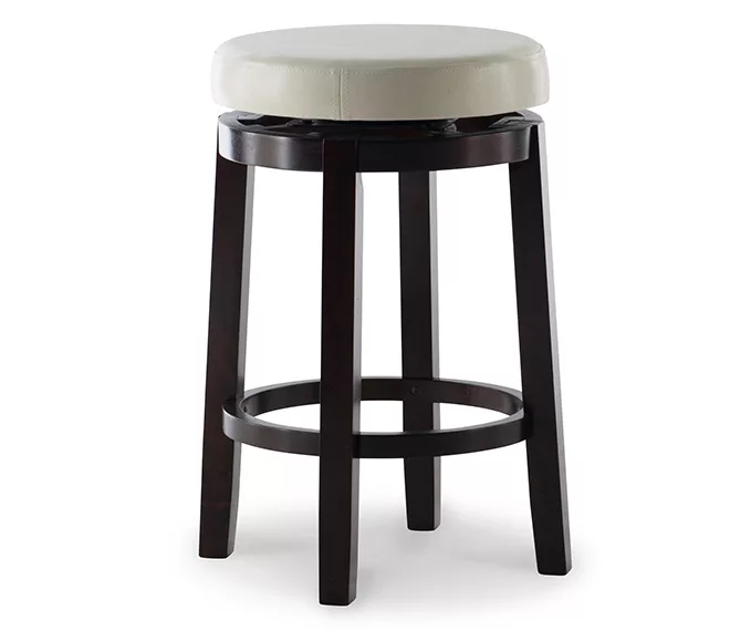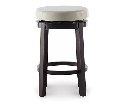 Sit and swivel in style with this chic backless stool featuring a simple, transitional design that suits any home. A round seat and frame lend a contemporary element while sleek, contrasting finishes offer a sophisticated touch. Padded seating, foot rest and a smooth swivel motion offer comfort while the sturdy construction ensure years of use.