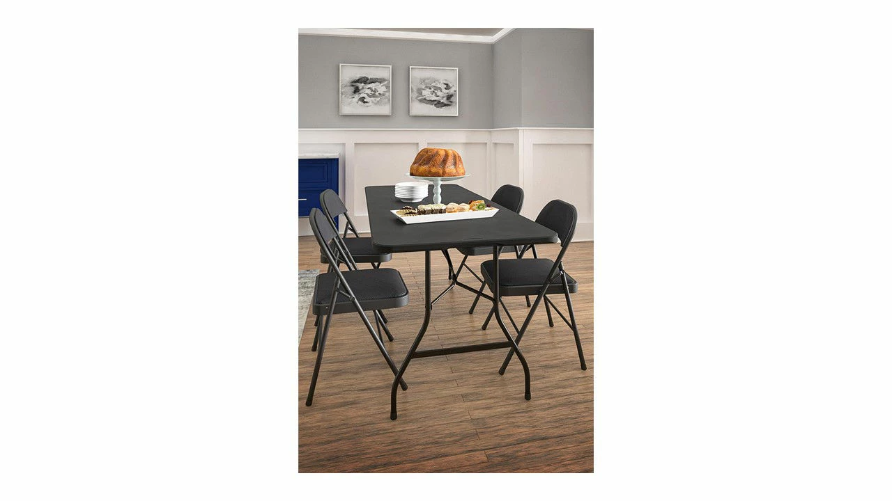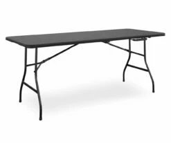 Set a table up anywhere with ease using this black folding blow mold table. With a hollow core and foldable design, this table is super-portable and easy to place just about anywhere. And, because of its solid exterior and neutral black design, it’s the perfect choice for any home or event.