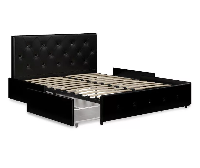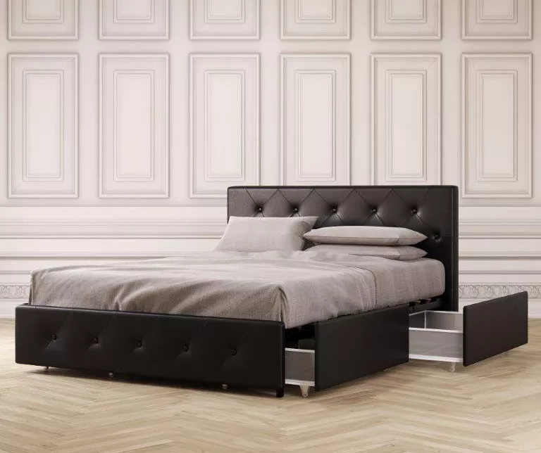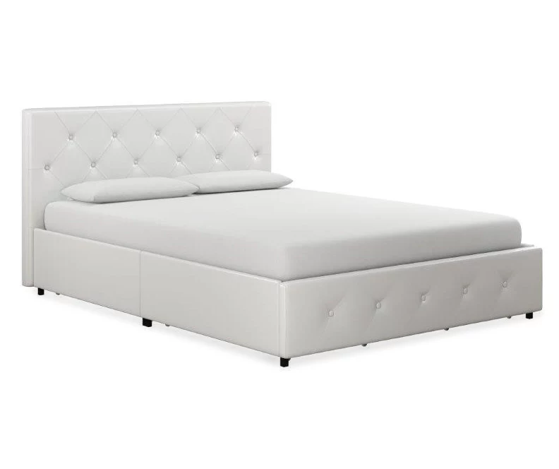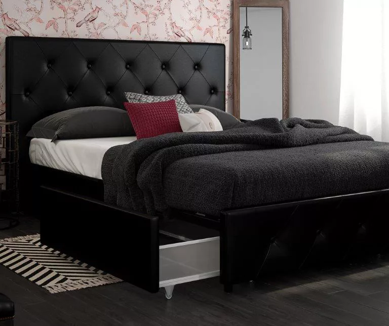 You’ll look forward to bedtime even more so now with the DHP Dana upholstered bed with storage. Upholstered in faux leather, this frame is accented with button-tufted diamond detailing on both the headboard and footboard. The bedframe features a bentwood slat support system that will allow you to sleep comfortably every night thanks to the even body weight distribution. Plus, the slats allow air to pass freely underneath you, keeping your mattress fresher for longer. What’s more, the integrated storage drawers on casters allow for plenty of extra storage space for all of your needs.