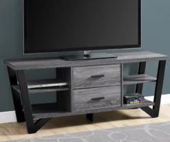 - Dark gray, powder-coated metal frame, the TV stand has a simple yet stylish design