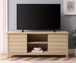 - Stand holds TVs up to 65″ wide and 120 lbs.