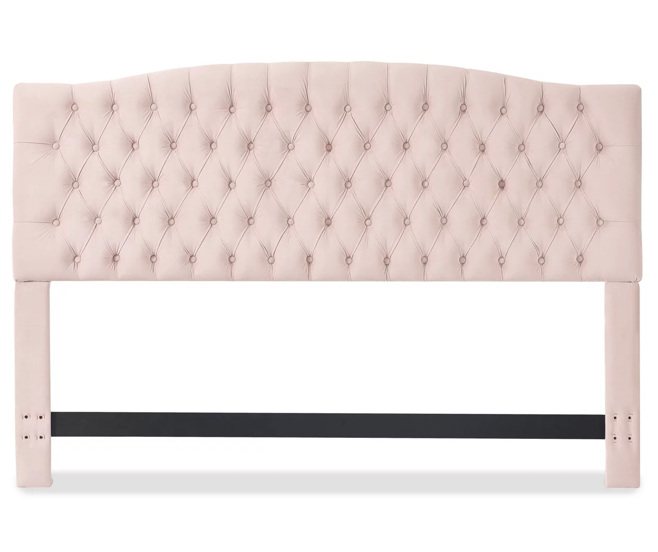 The bedroom is where you find inner peace and calm, and the intimate space that recharges you after a long day. So, give it the style and sophistication it deserves with this button-tufted bed frame. The velvet upholstery, in a beautiful shade of pink, adds a pop of color to any space while the lofty padding will comfort your back for during those late nights, or late mornings, spent reading, texting or watching your favorite show. The subtle top curve makes a bold complement to the straightedges while the hardwood frame is made to last a lifetime.