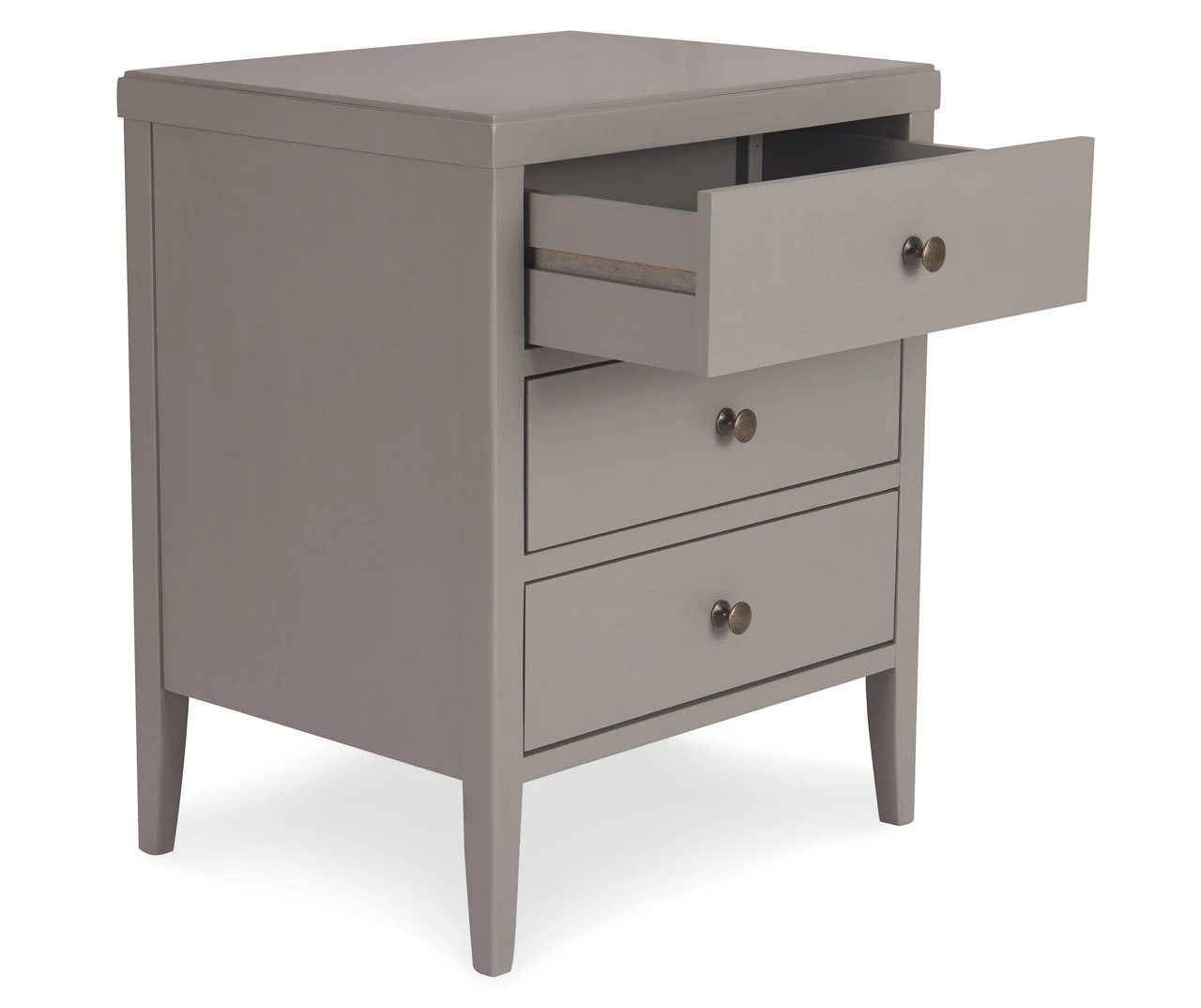 Boasting a solid wood frame and antique bronze hardware, this bedside table can easily blend into any room’s decor. The three roomy drawers are perfect for storing books and evening essentials, while the top surface plays host to lamps and candles In either the master suite or guest bedroom, a nightstand is a foundational piece that you’ll be sure you love.
