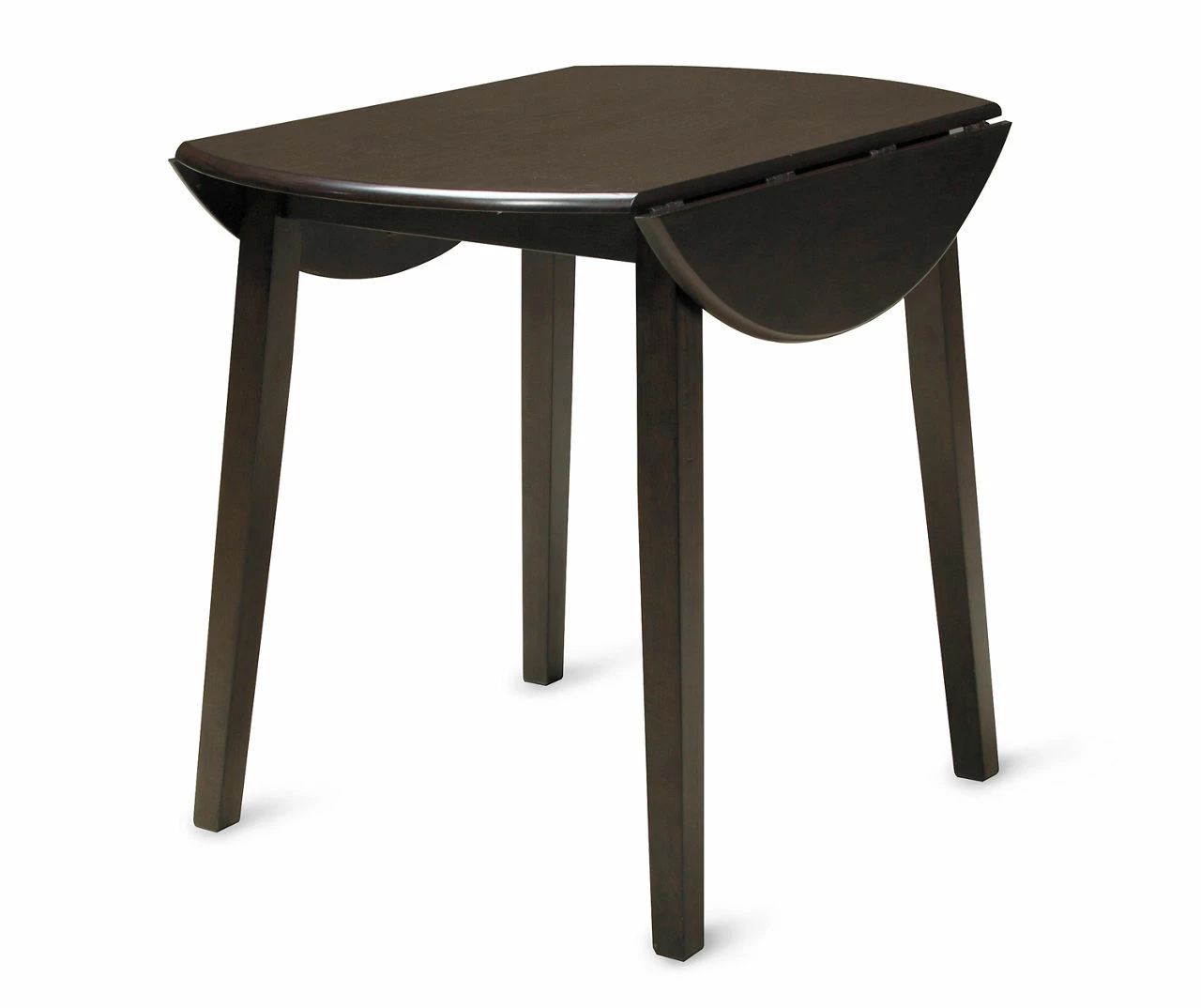 Dine on simplistic, stylish design with this wonderful Hammis dining room table from Ashley. Perfect for small or compact spaces, this table’s smaller size doesn’t inhibit it from a sleek construction in a dark, dramatic finish. Convert the table with its hinged drop leaves to accommodate more people in the kitchen, dining room or basement.