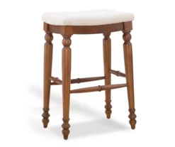 Beautifully turned legs and ivory upholstery give this backless bar stool a traditional look that elevates the design of any home. The rich walnut finish contrasts with the neutral linen upholstery. Perfect for most aesthetics, this stool blends a classic elegance with sturdiness and comfort thanks to a padded seat and foot rests. Ideal for any home bar, kitchen island or breakfast nook, this stool introduces a timeless look that complements any home.