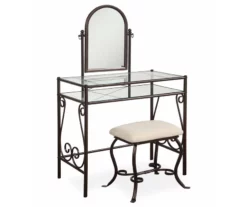 Heather Metal Adjustable Mirror Vanity Set With Stool