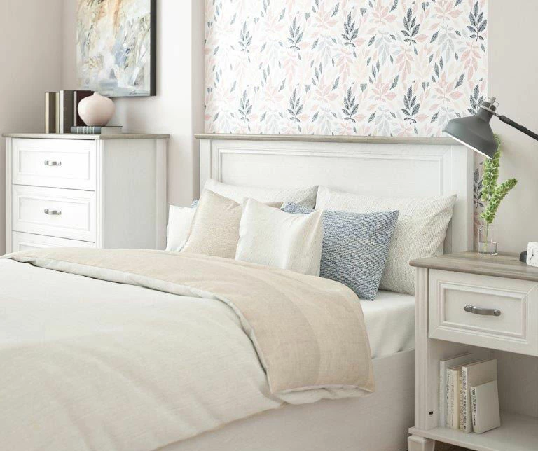 Add a classic touch to your bedroom with the Ameriwood Home Hillview Full Headboard. The white woodgrain finish of the laminated MDF and particleboard adds an elegant touch and fits into any décor.