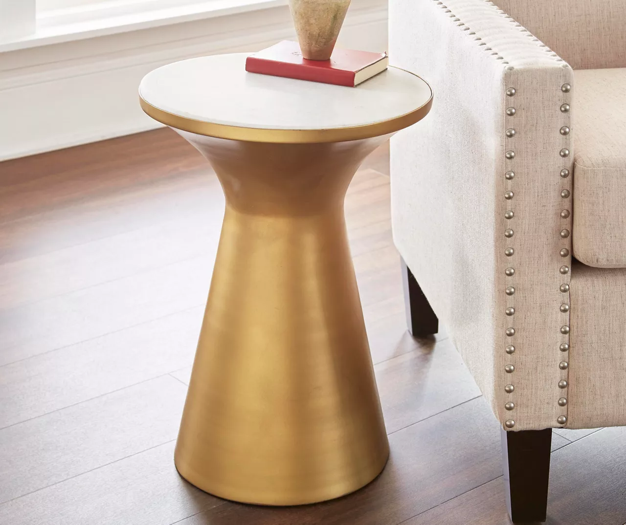 Just like a find from an Eastern bazaar, the Jaipur end table is globally inspired for transforming your living spaces. Solid steel construction with a warm golden brass finish topped by a white marble inlay will bring interest to any space that needs that little something.