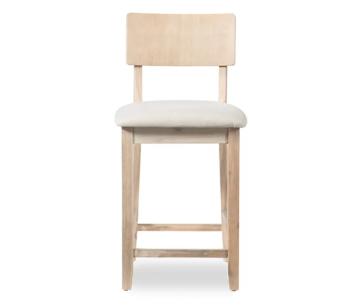 Classic simplicity and neutral finishes gives this counter stool endless versatility. A thick, padded seat upholstered with a soft linen blend offers exceptional comfort while the foot rests increase stability. Suitable for any style and color scheme, this stool will fit right in with any aesthetic.