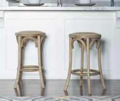 Glitzhome Mid-Century Modern Faux Leather Adjustable Bar Stools, 2-Pack