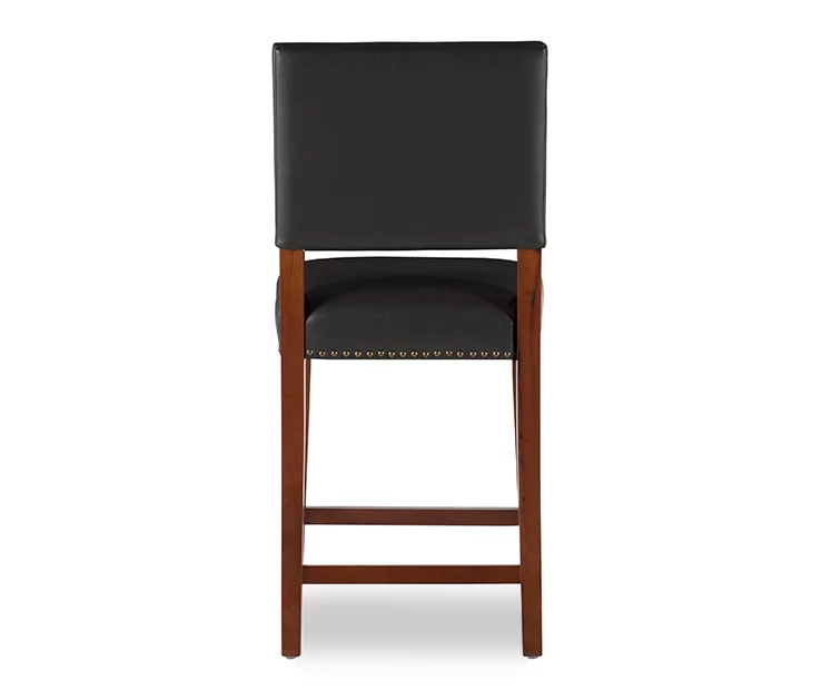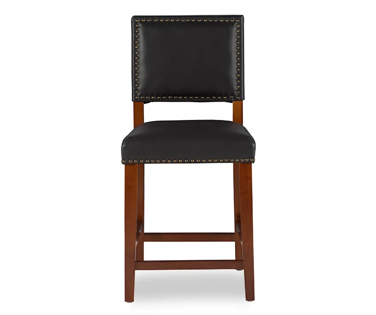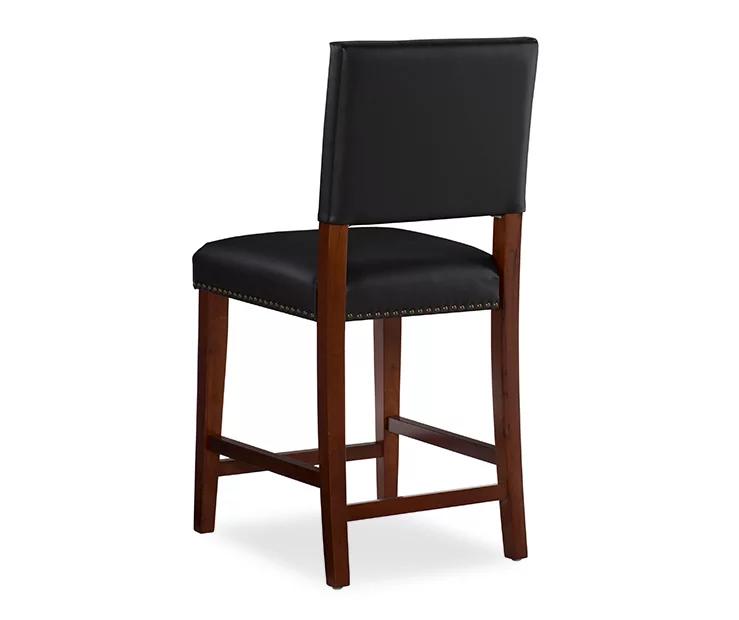 Nailhead trim gleams against sleek black upholstery to give this counter stool a rugged effect that grounds any space with timeless style. Clean, classic lines suit a variety of settings from rustic to contemporary while the padded seat and foot rests offer comfort and stability.