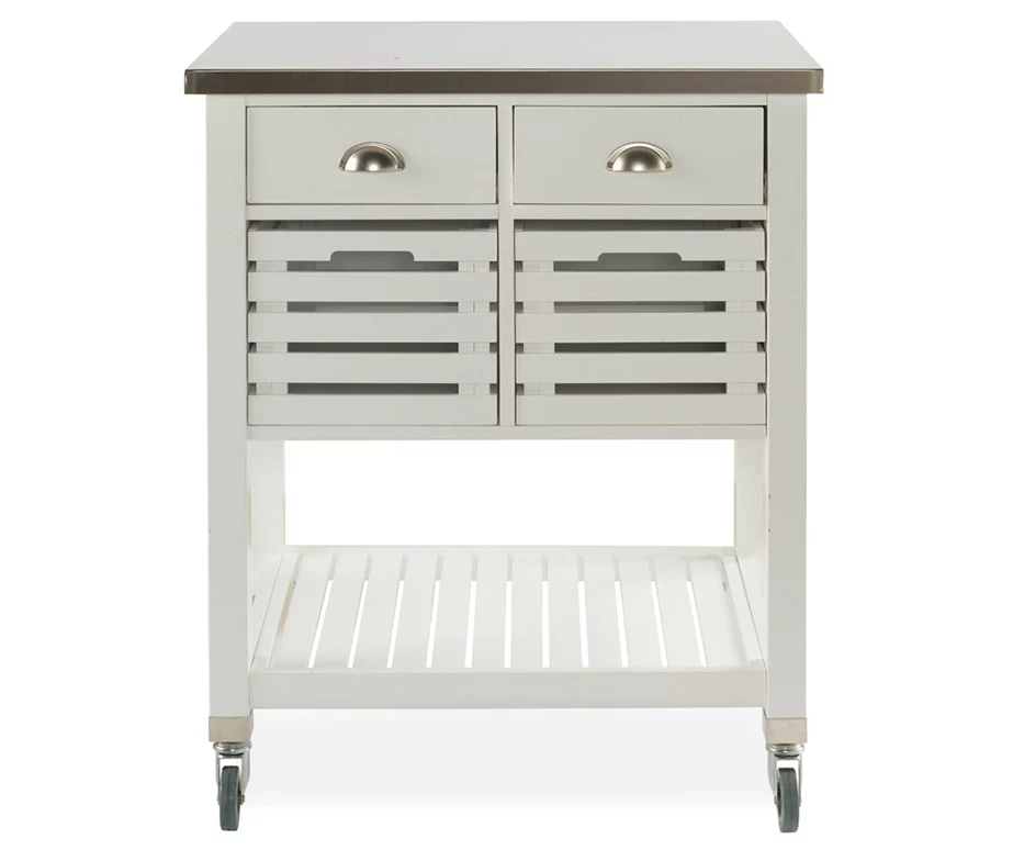 - 3 – Drawers, 2 – pull-out baskets and bottom shelf provide ample storage space