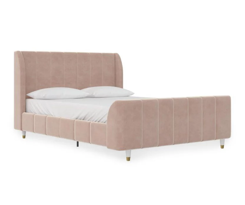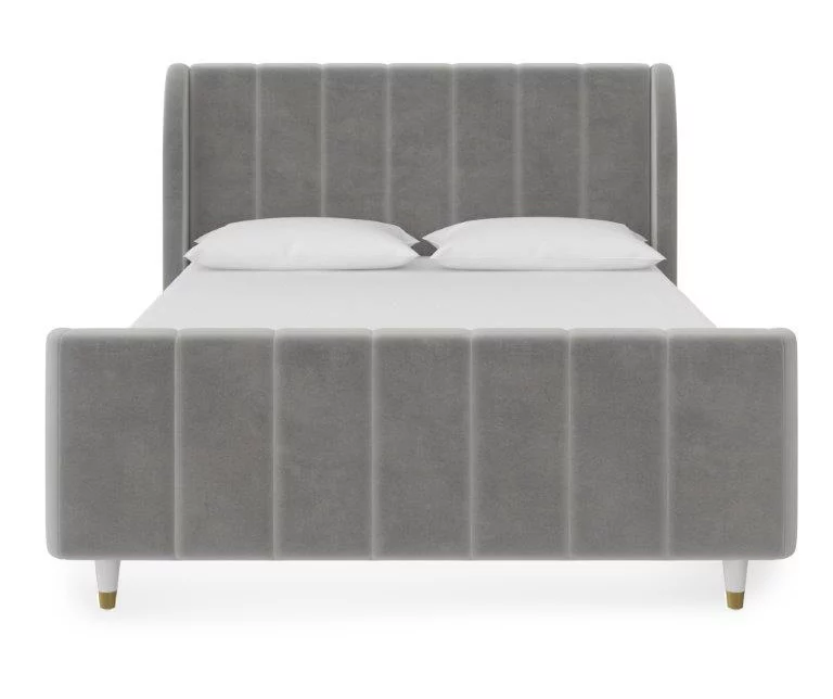 - Mid-century modern wingback design with vertical channel tufting on the headboard, footboard and side panels