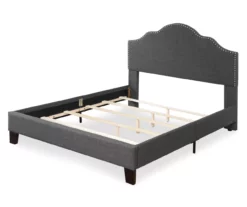 The Lombard California king upholstered bed from Willow River gives a soft, elegant feel to your bedroom. With a modern-traditional design, this platform bed has a classic curved shape with nailhead trim details for a sophisticated style.