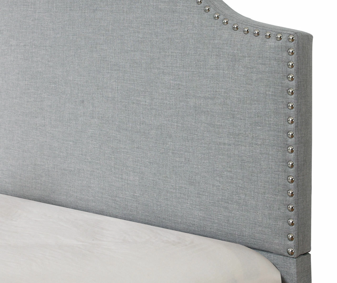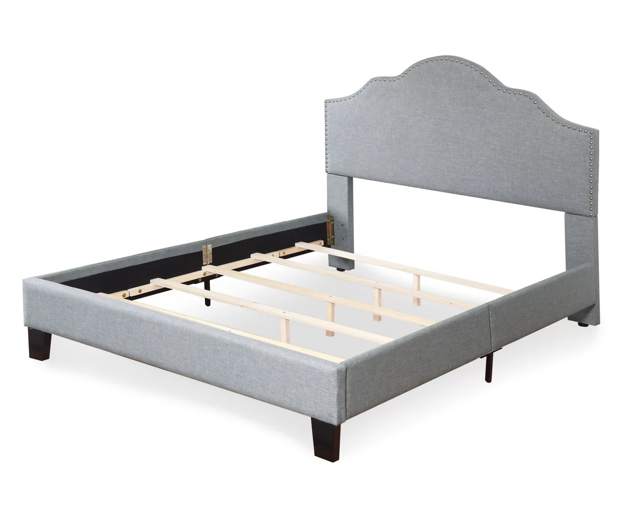 The Lombard California king upholstered bed from Willow River gives a soft, elegant feel to your bedroom. With a modern-traditional design, this platform bed has a classic curved shape with nailhead trim details for a sophisticated style.