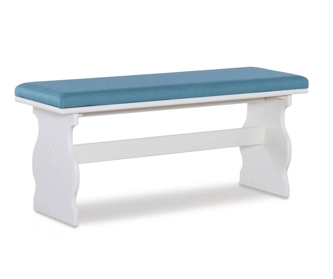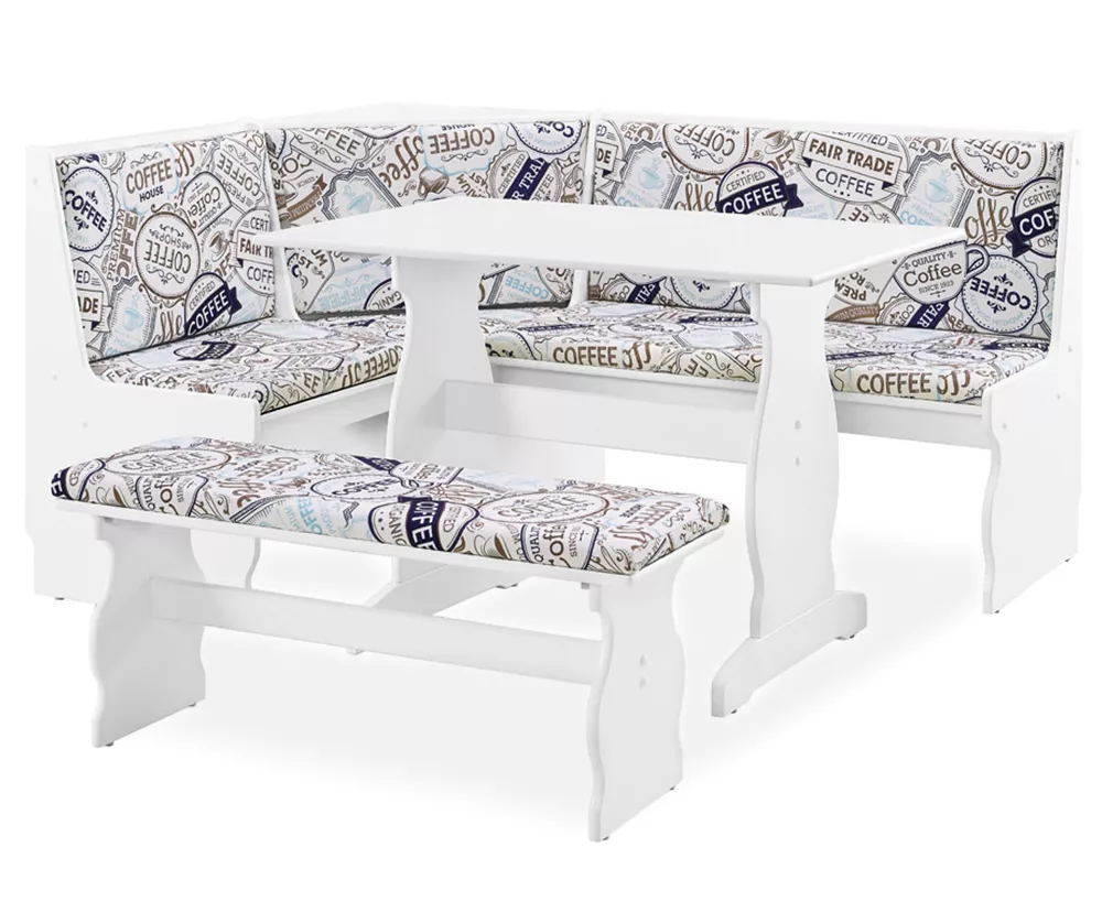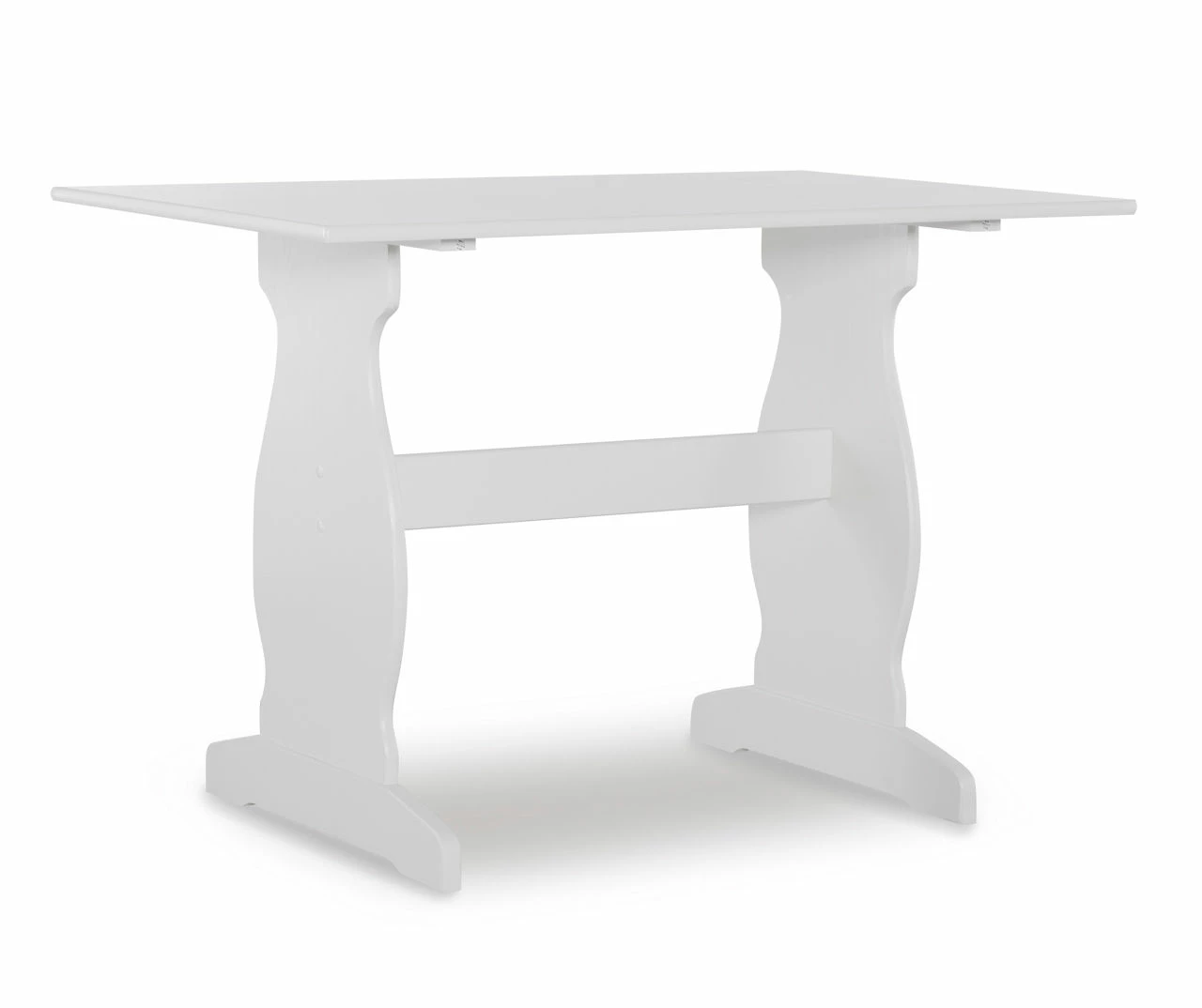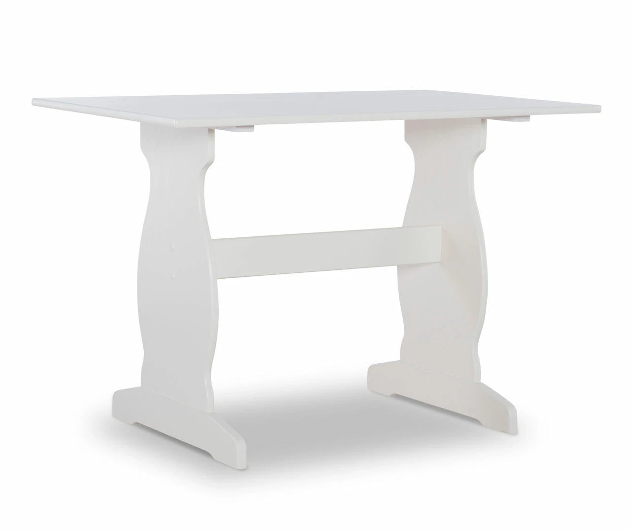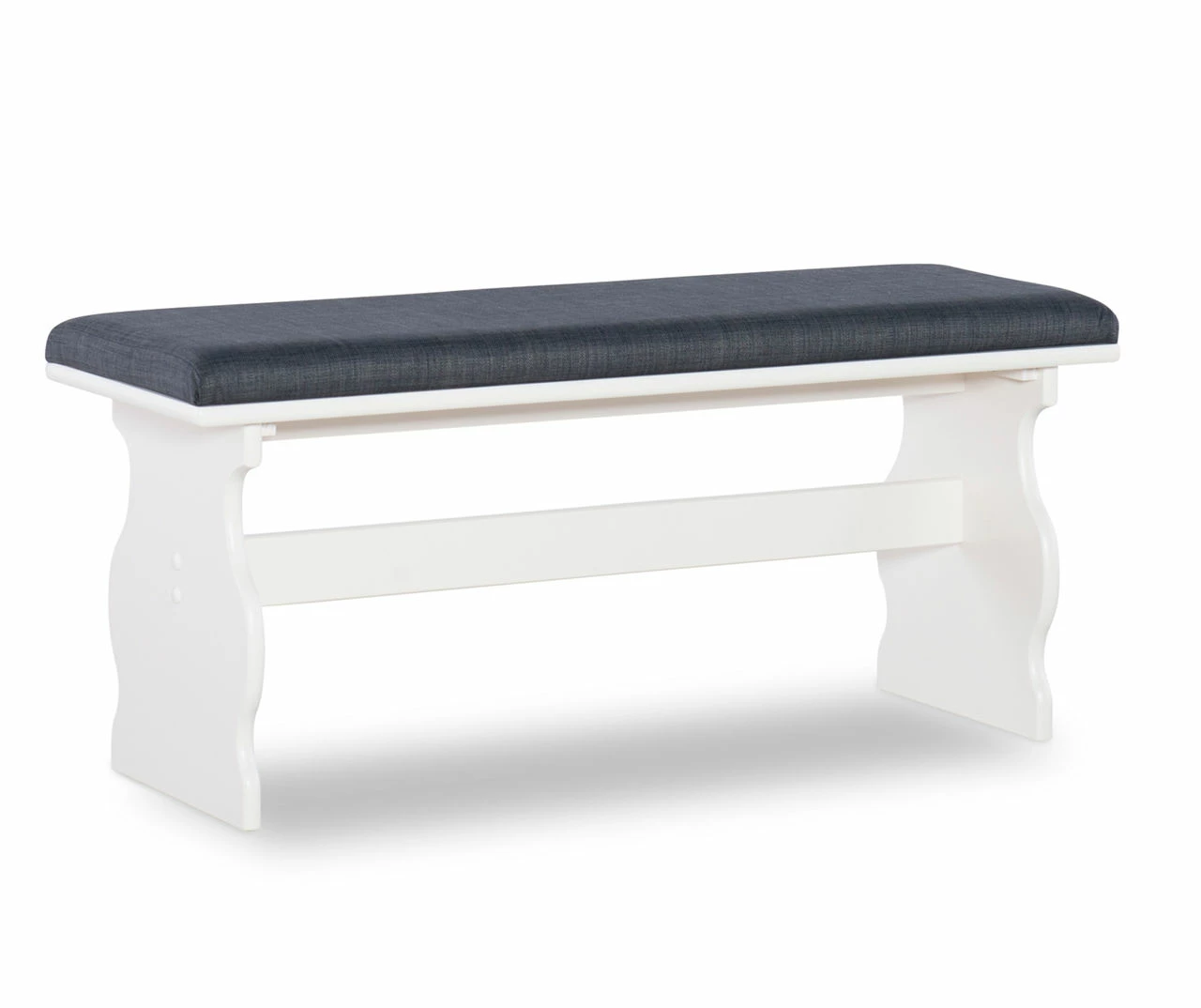 Create cozy kitchen comfort even in the tiniest of spaces with this lovely Maggie dining nook! Padded seating in charcoal gray pairs well with the classic white look of the set’s pine constructed frame. Generously sized to accommodate up to five people, this wonderful furniture set is perfect for any corner of your kitchen.