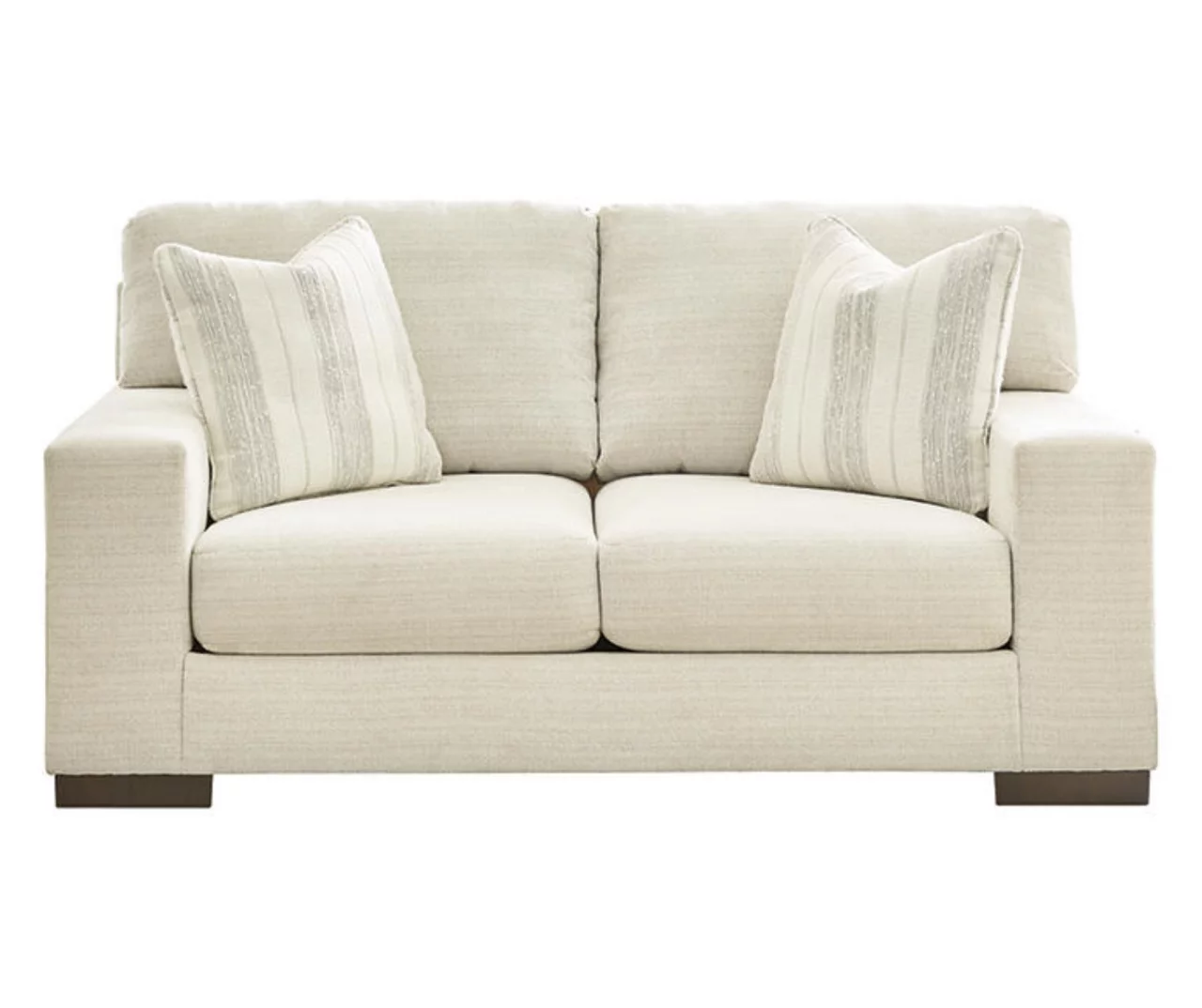 Classic comfort gets a mod twist with this loveseat. Its minimalistic approach and structured silhouette bring a clean-lined design element to your living room. Sink into the positively plush cushions while relaxing solo, or curl up with a glass of wine while hosting guests. And with light neutral upholstery that suits both casual and contemporary spaces, this loveseat offers endless style possibilities.
