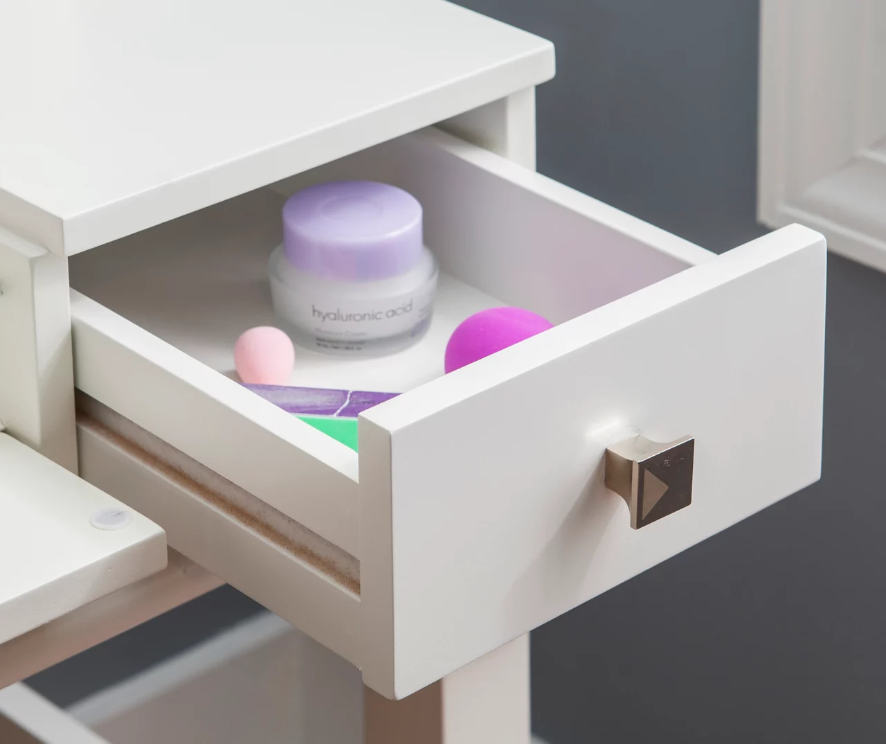 - 2 – Side drawers for jewelry, makeup or perfume storage