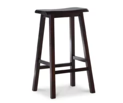 Classic lines and a dark brown finish make this bar stool a perfect choice for any style of home. Timeless and versatile, this stool features a sloping seat and foot rests that add comfort and stability to the design. The rich, gleaming finish complements most color schemes while the classic simplicity suits existing decor with ease.
