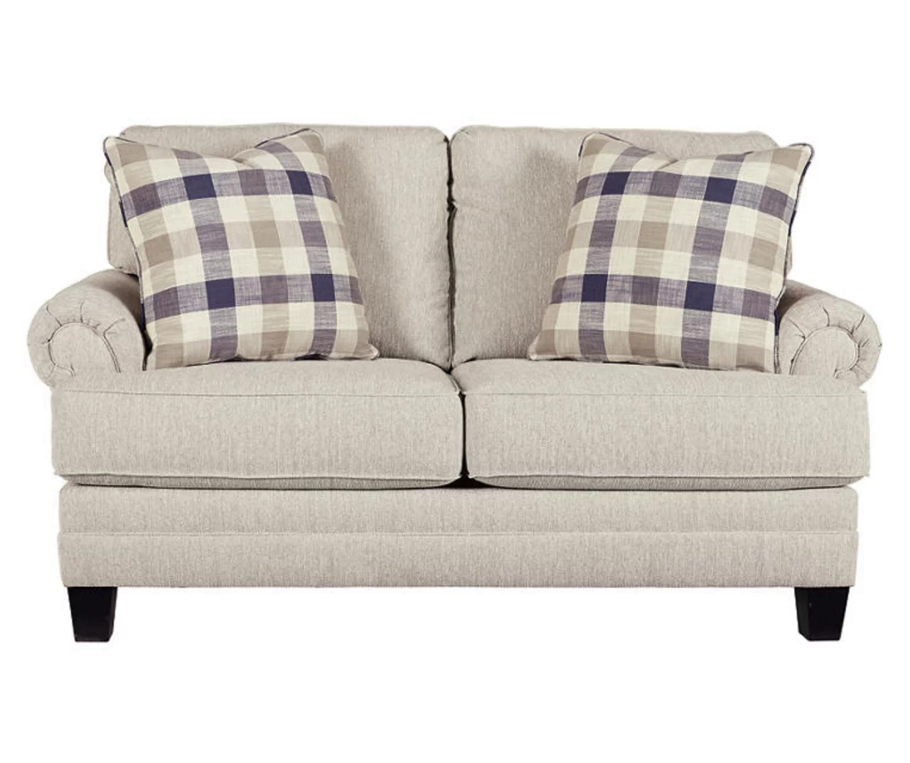 If you yearn for furniture that can transition seamlessly – whether your space is classic, coastal chic or contemporary – rest assured this loveseat is an inspired choice. Sporting a textured weave, the chenille-feel upholstery in a light linen tone is a pleasure for the senses. The eclectic mix of plaid and floral patterned accent pillows is so unexpected – yet such a welcome surprise.