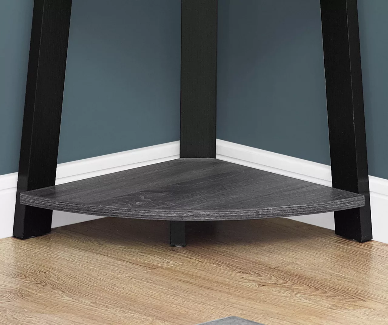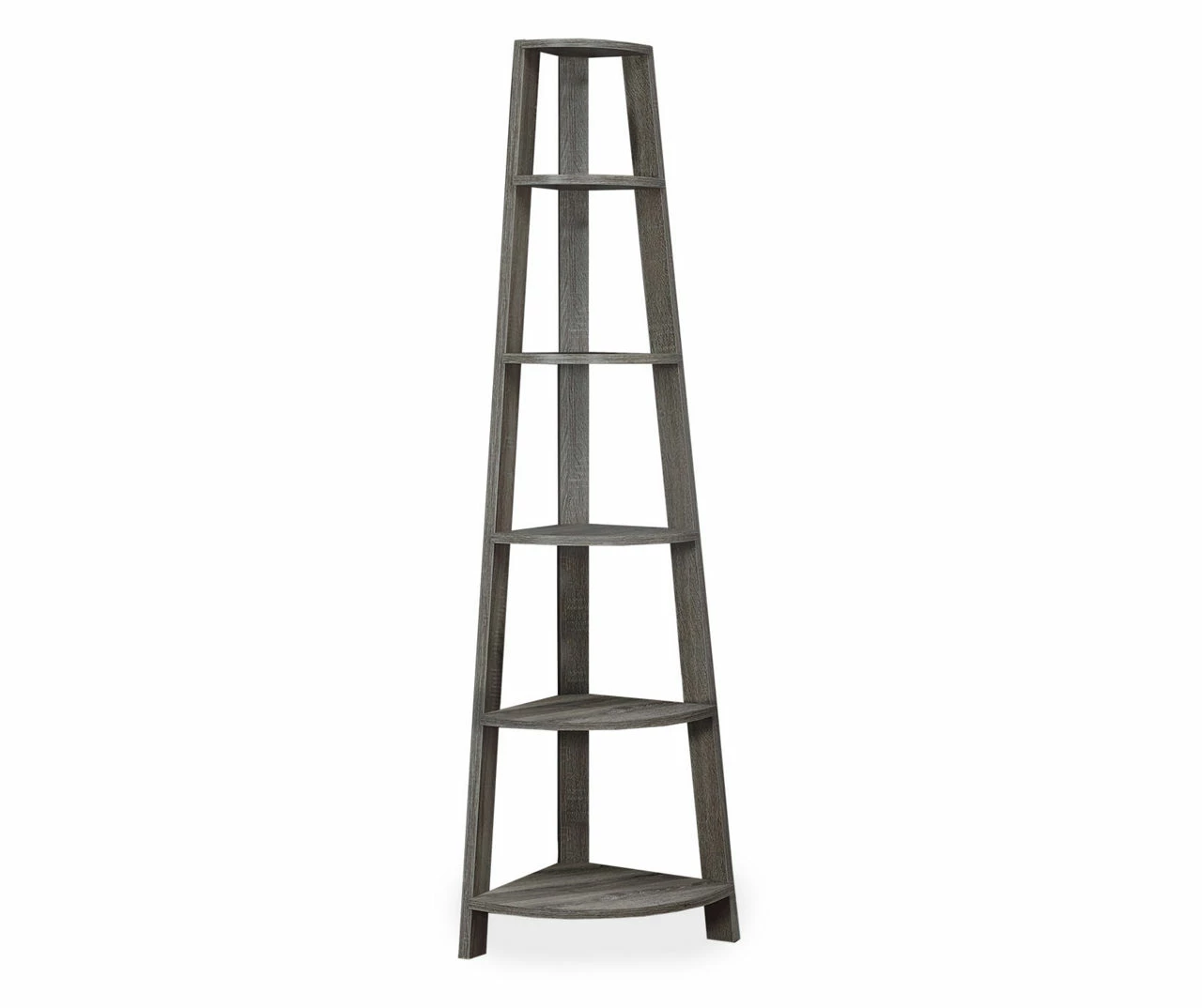 Make use of a spot that is often tough to work with: the corner. Set up this etagere bookcase and let it do its thing! Look how nice this bookshelf fits in a corner of your living room, office or bedroom, allowing you to showcase books and all types of decor easily. Maximize storage and display with a modern piece that will be sure to help you utilize all the space available to you thanks to five fixed tray style shelves. Three sturdy beam legs ensure structural integrity to this corner ladder shelf, finished in a white color.