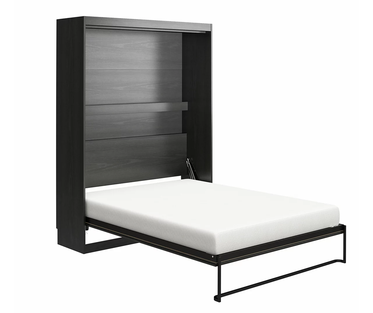 - Space-saving Murphey wall bed fits a full-size mattress up to 10″ thick