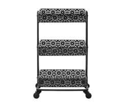 Functional meets modern with the round Otero serving cart. Impress your guests with its bold black tempered glass shelves with chrome accents. The middle shelf features two chrome rings perfect for a towel or barware accessories. Caster wheels are included for ease of movement, taking the refreshments to where your guests are.