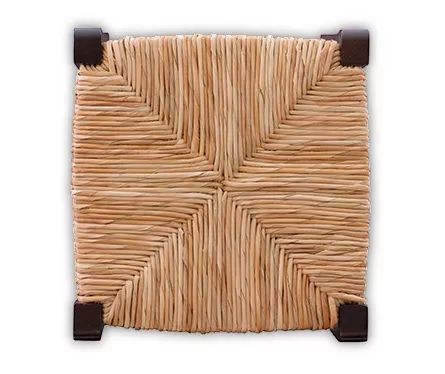- Natural handwoven rush seat evokes a traditional farmhouse aesthetic