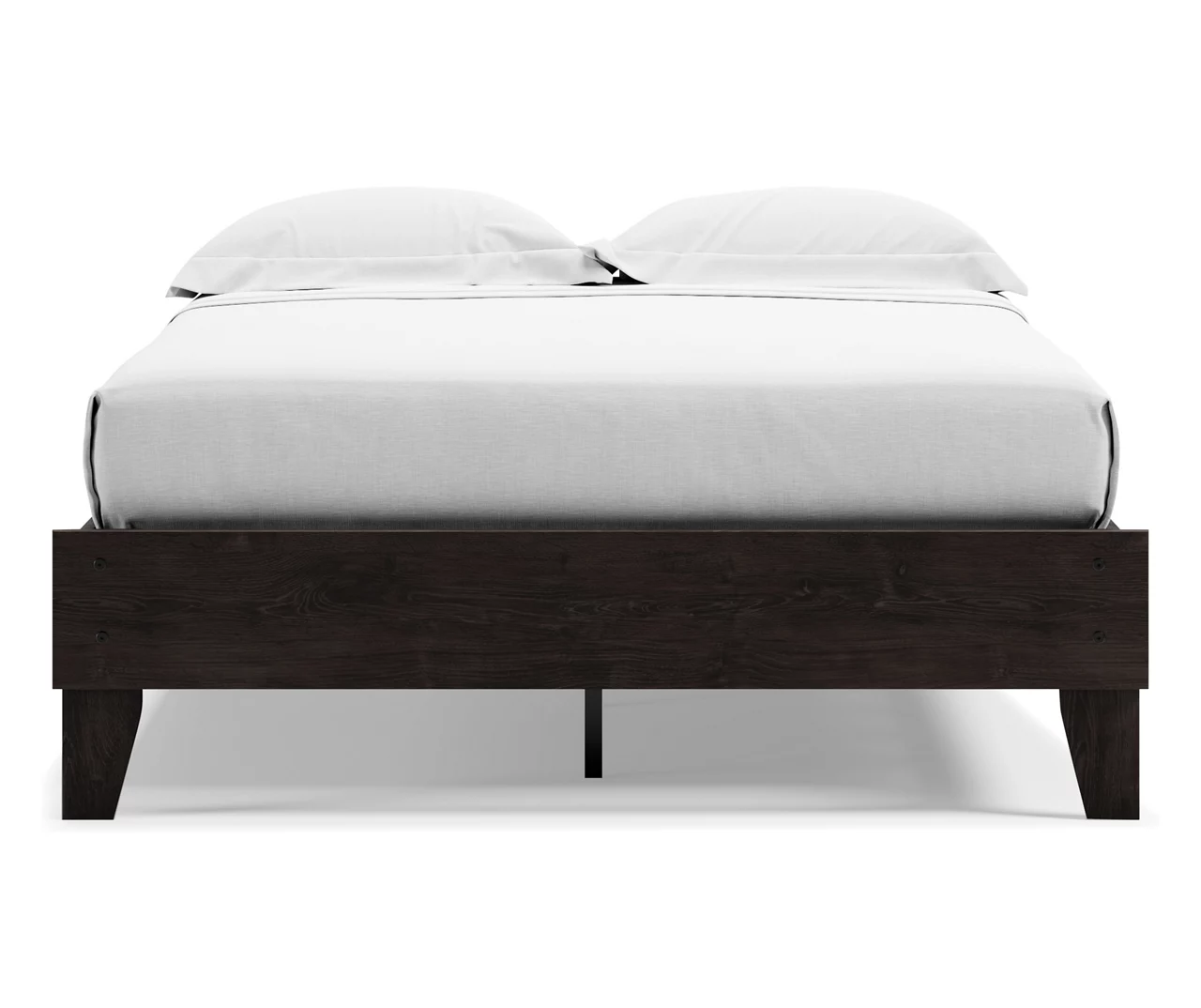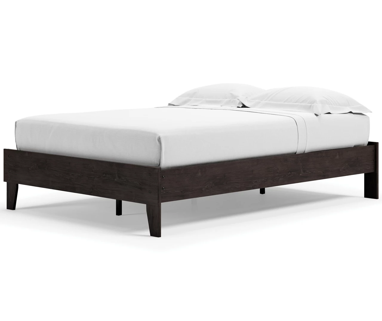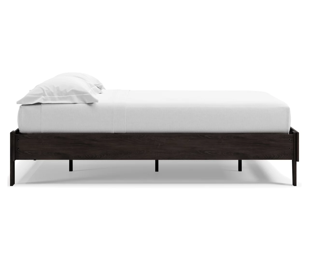 The perfect marriage of simple and contemporary style, this full platform bed is a charming addition to your home. This bed keeps things simple with its dark charcoal finish over replicated oak grain. Best of all, this bed includes a footboard, rails and platform – no additional foundation or box spring needed.