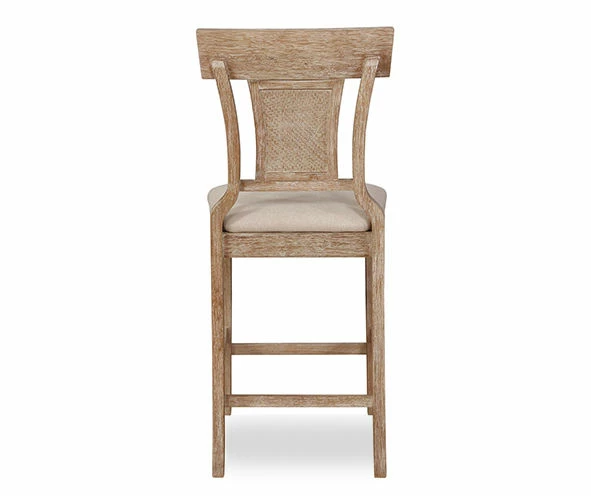 Casual yet sophisticated, this counter stool features an eye-catching back that elevates the look of any room. A rustic gray wash offers a neutral tone that suits any color scheme while the upholstered seat adds plush comfort. Ideal for a variety of styles from traditional to farmhouse, this stool effortlessly blends refined style with inviting charm for a look that complements any space.