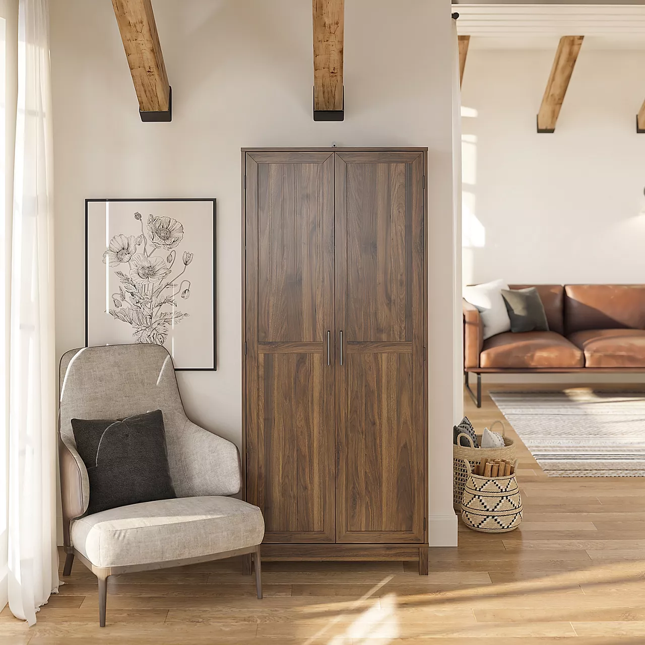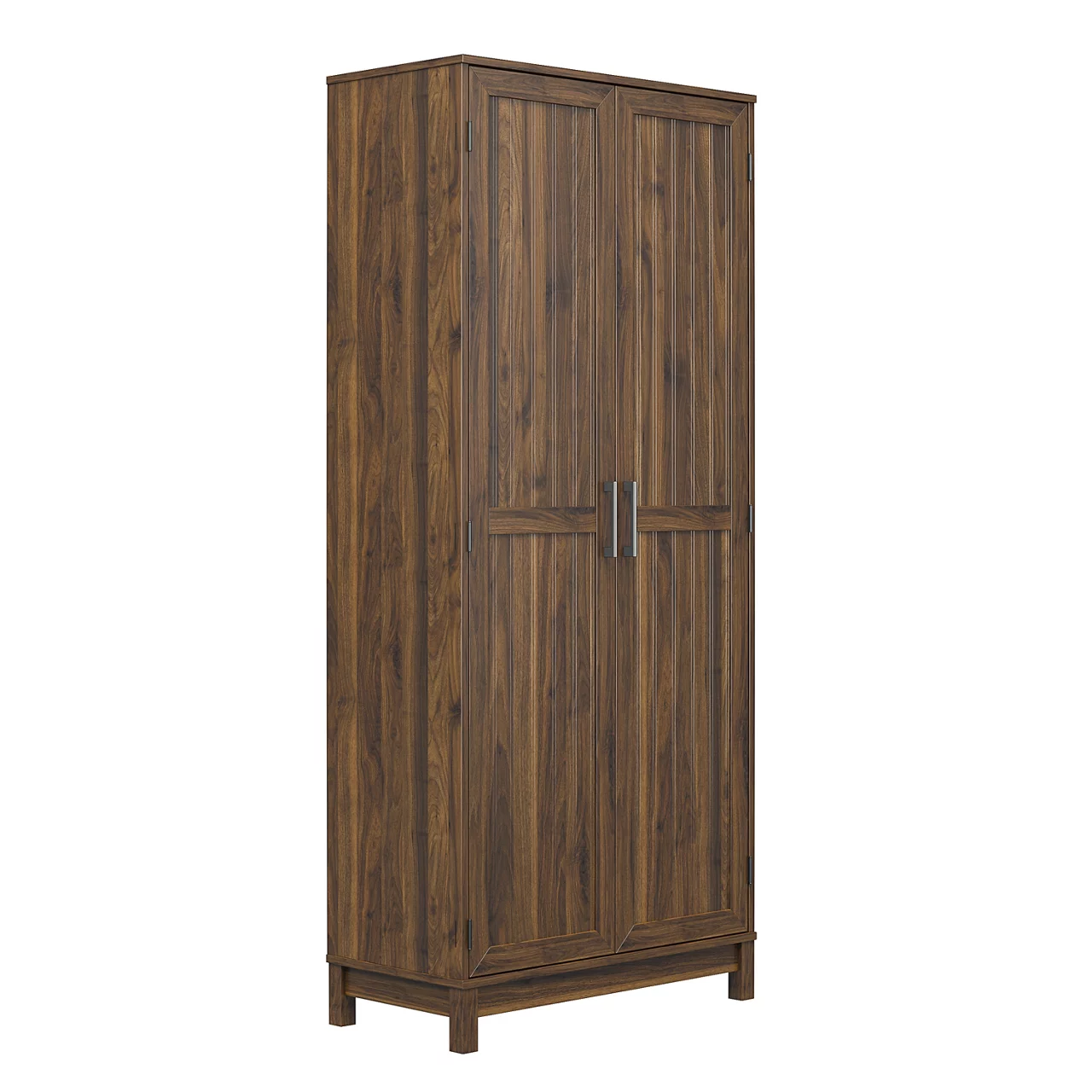 Incorporate a convenient storage solution into your home with the Seven Hills storage cabinet from Ameriwood. Made from engineered wood, the traditional framed wainscot doors and Columbia walnut woodgrain color will complement any living space, including modern farmhouse décor. The interior of the storage cabinet features four shelves, two of which are adjustable, for allowing you to customize your storage for both small and large items.