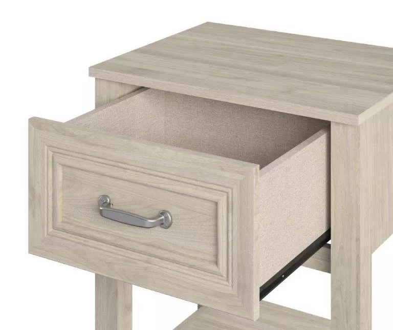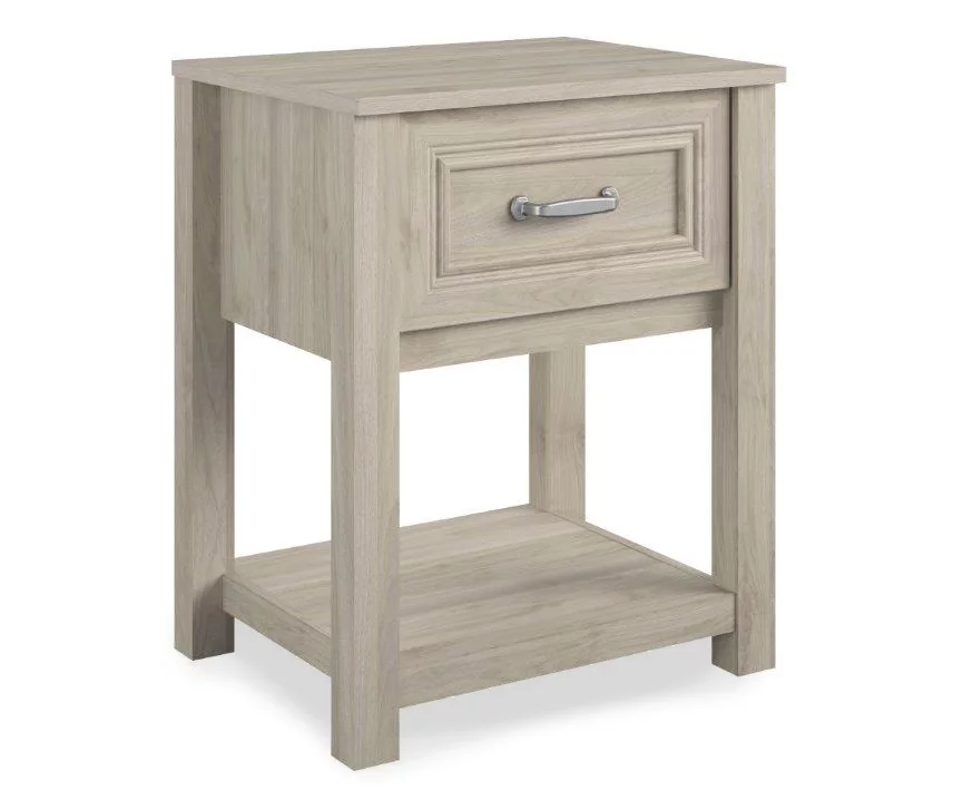 Your little one is running wild in the backyard, giggling as a butterfly lands on their shoulder, then yelling with joy as they race across the lawn into your waiting arms. They’re growing faster than a weed, and you realize it’s time to convert their nursery into a big kids’ room. Bring their love of the outdoors inside with the Little Seeds Sierra Ridge Levi kids’ nightstand. Made of laminated MDF and particleboard with a lovely light walnut woodgrain finish, this kids’ nightstand will blend seamlessly with a coastal or modern kids’ room design. The nightstand drawer features durable metal slides with built in safety stops and along with the open lower shelf, offers plenty of storage space for bedtime necessities.