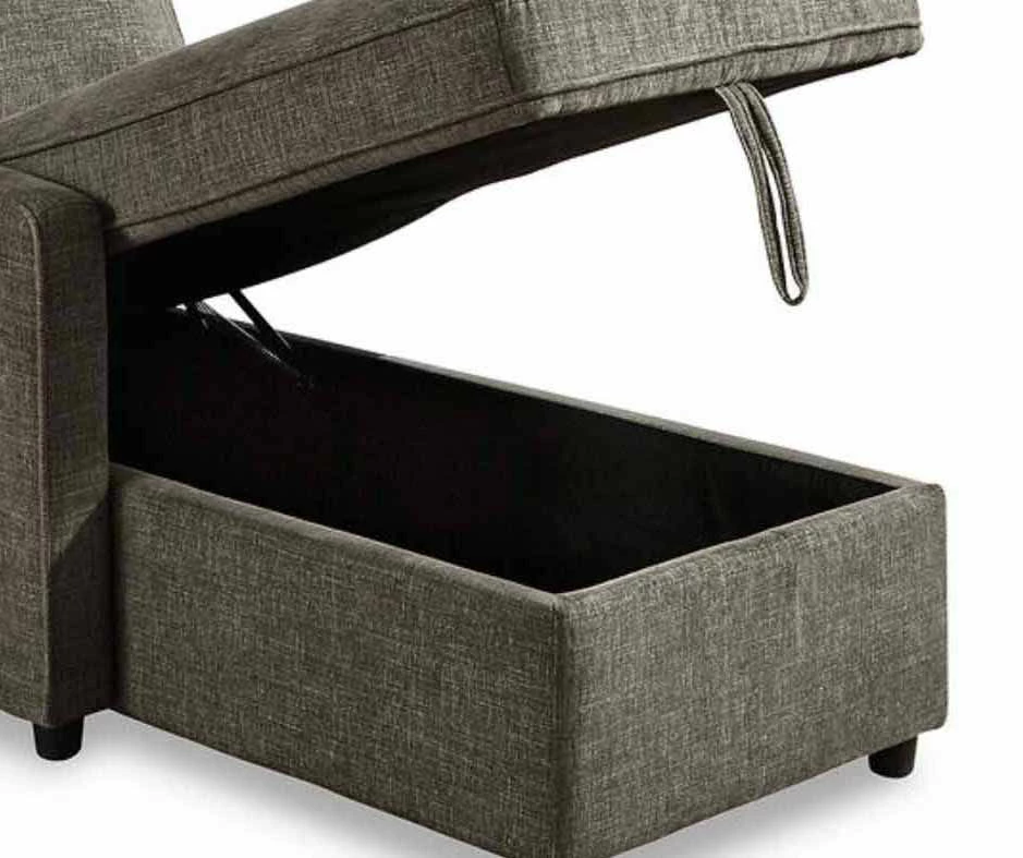 - Transitional to modern sectional with left-arm-facing storage corner chaise and right-arm-facing pop-up bed
