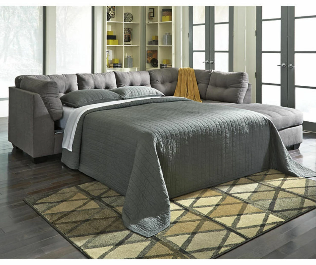 Destination: urban oasis. Elevate your design aesthetic with a chic look inspired by city high-rise living. Sleek, sultry and tailored to a T with plush, tufted boxed cushions packed with metro modern flair, this sectional in charcoal gray is where sophisticated style meets everyday comfort. A pull-out bed in the sofa allows you to accomodate your guests when they decide to stay for the night.